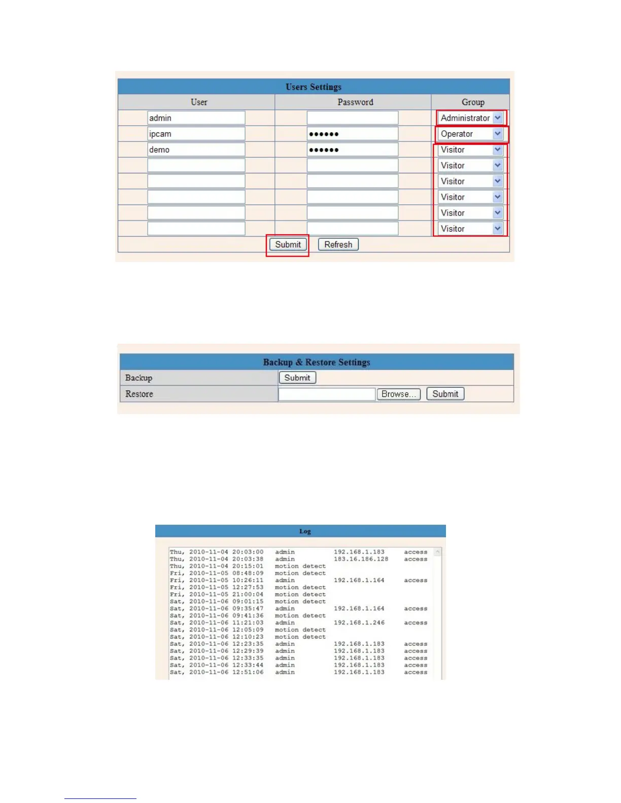 1)Backup: Backup IP Camera all the Parameter, if you want to save all the current settings that you have set