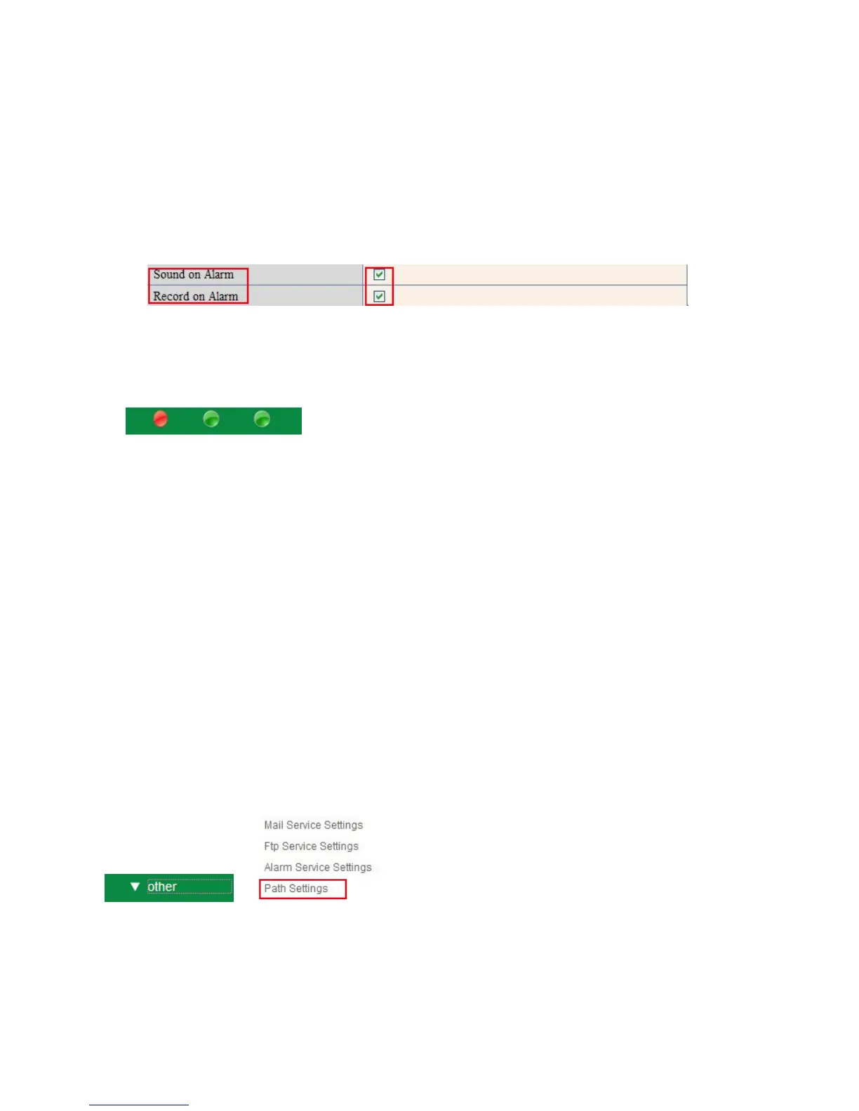 If you do not want the camera do recording once alarm triggered, cancel it here