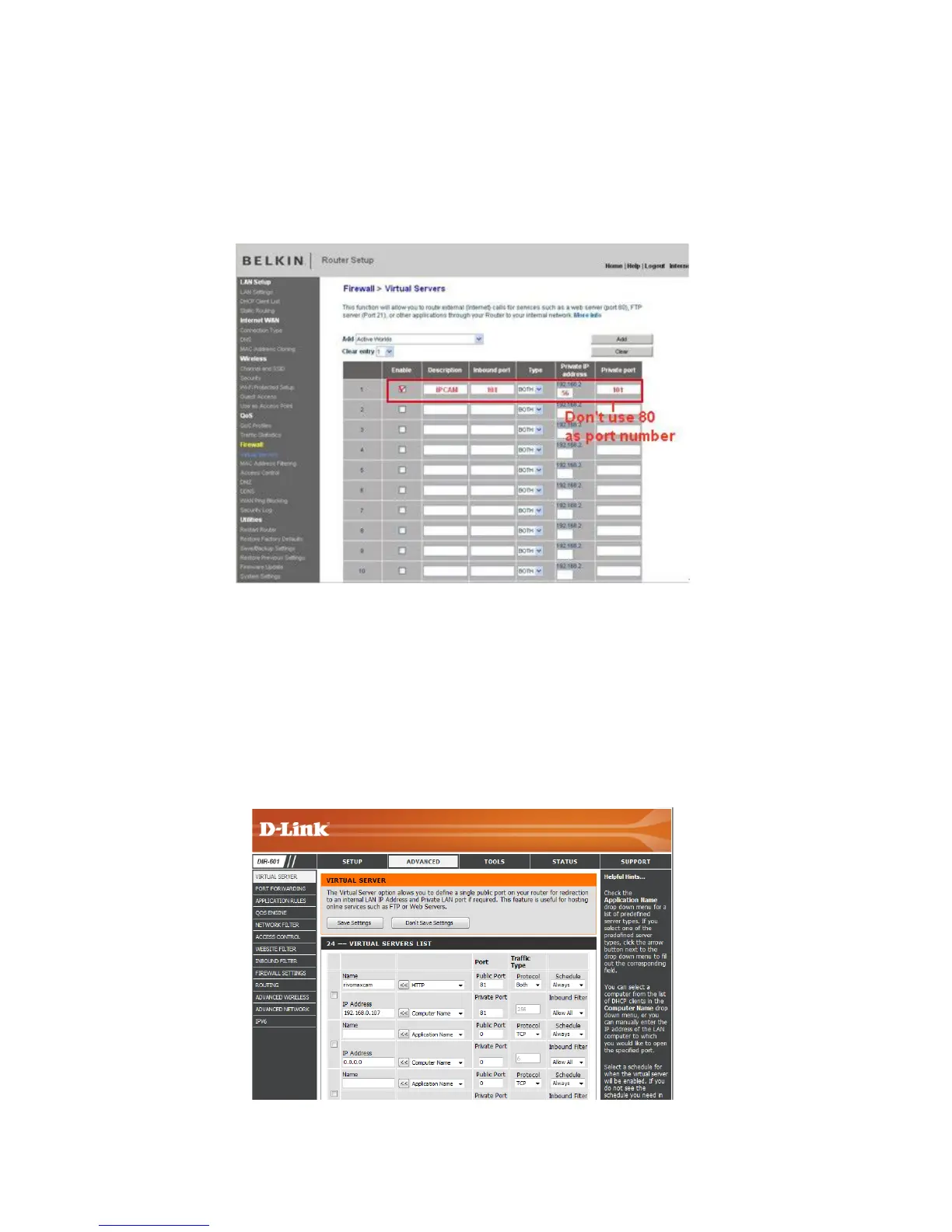 NOTE: The public port & private port should be the same as camera’s port, choose the protocol to