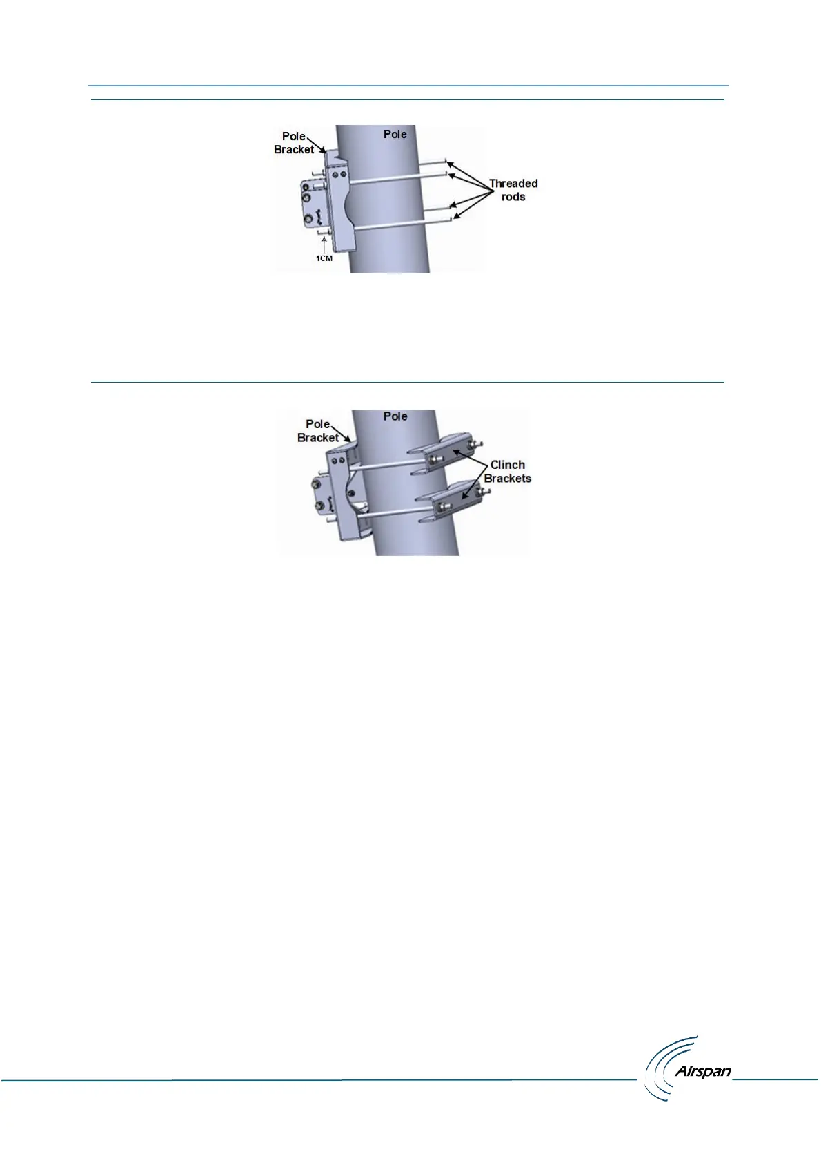 6. Insert a clinch clamp on the two (2) upper threaded rods and put on washers and nuts and