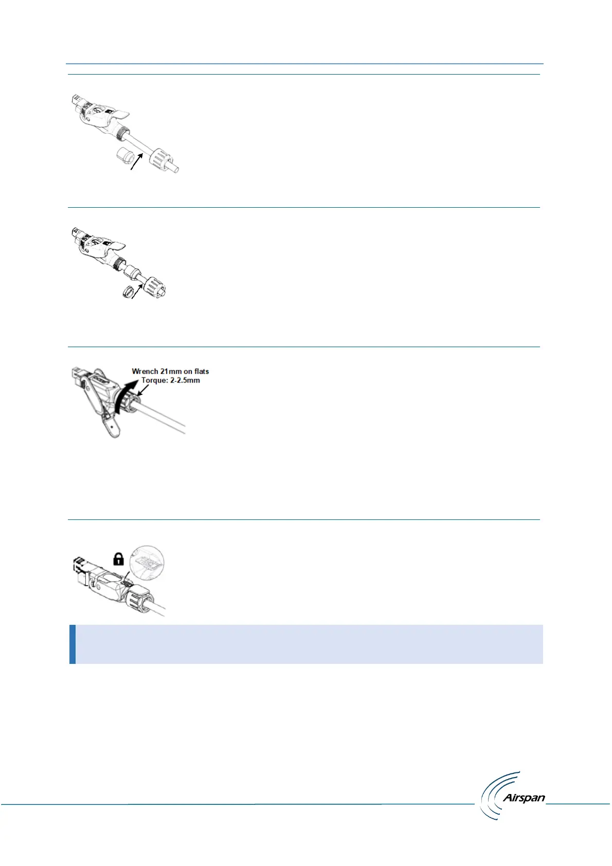 11. Tighten the gland nut with a 21mm wrench, to a torque of no more than 2-2.5 Nm (1.47 –