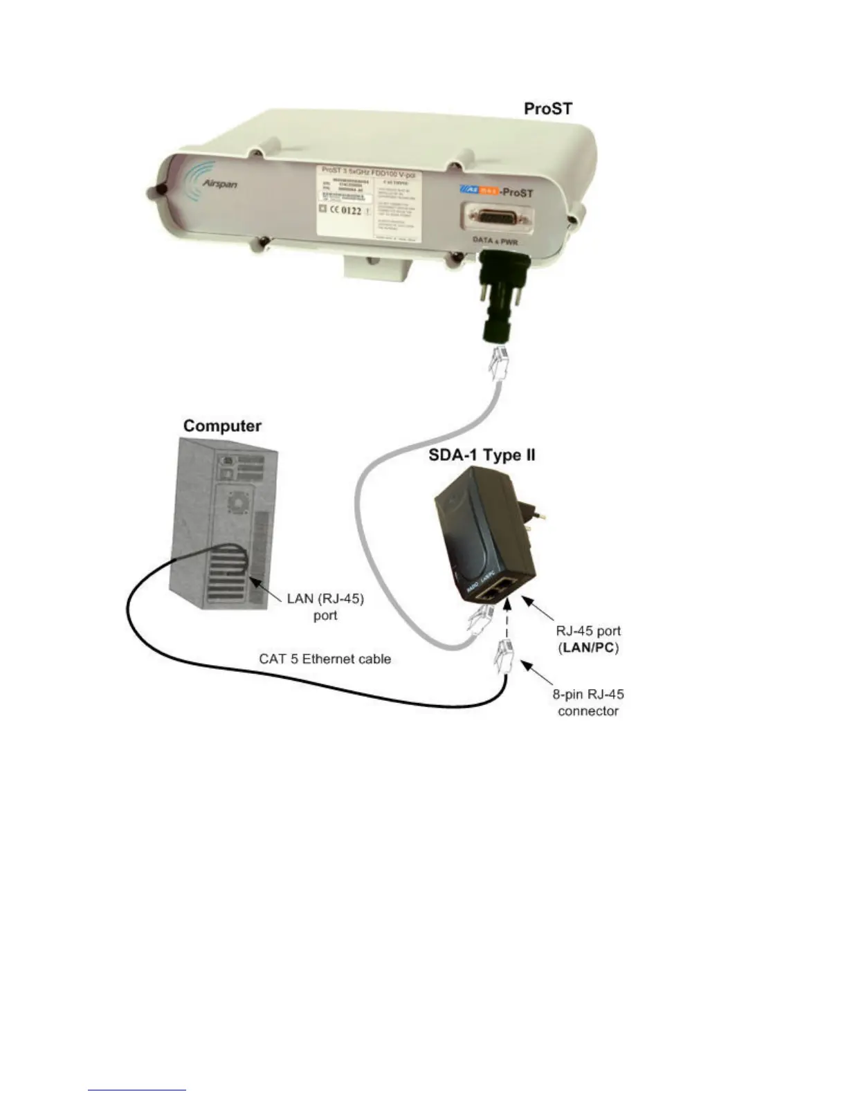 The cable setup for SDA-4S LAN connectivity is as follows: