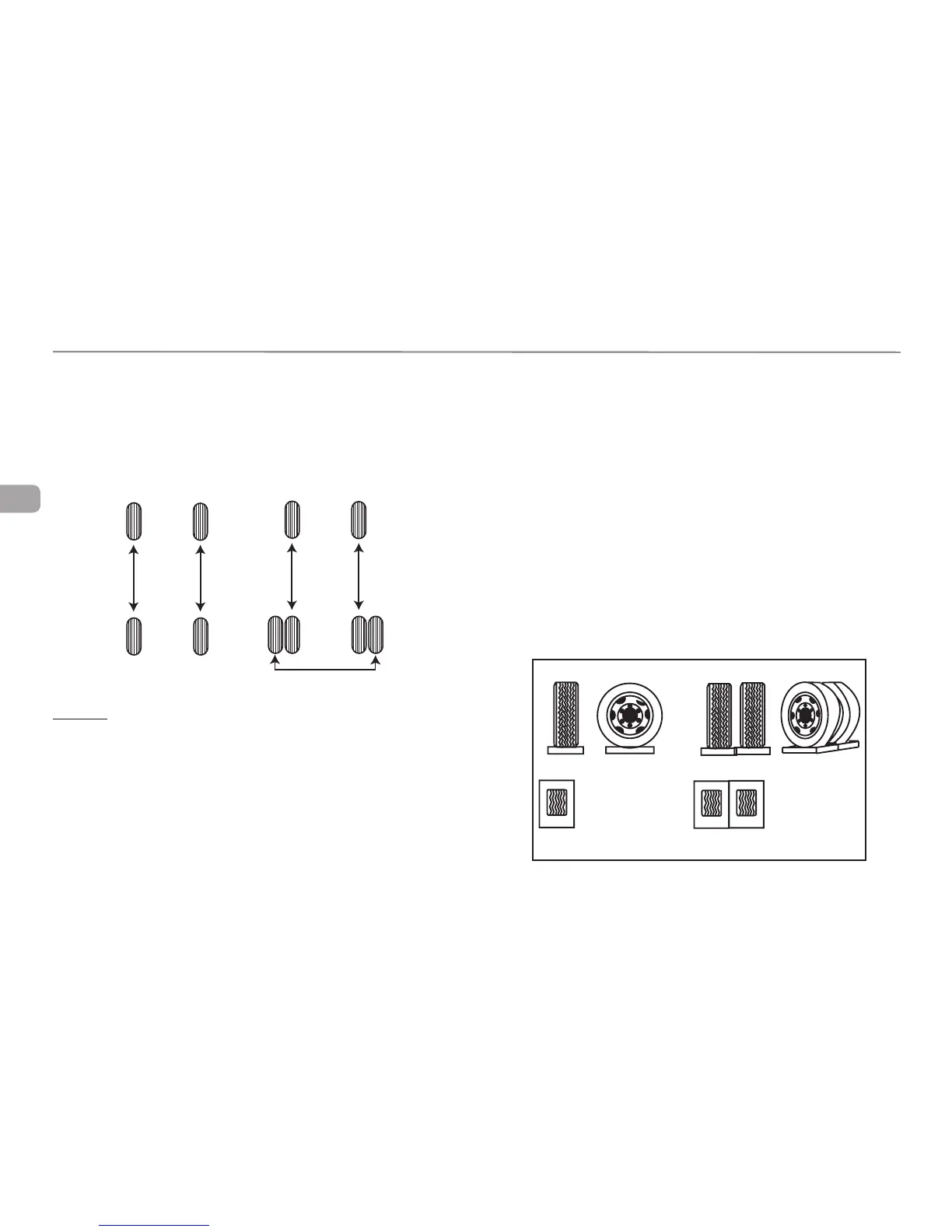 Rotation pattern for single and dual rear wheels.