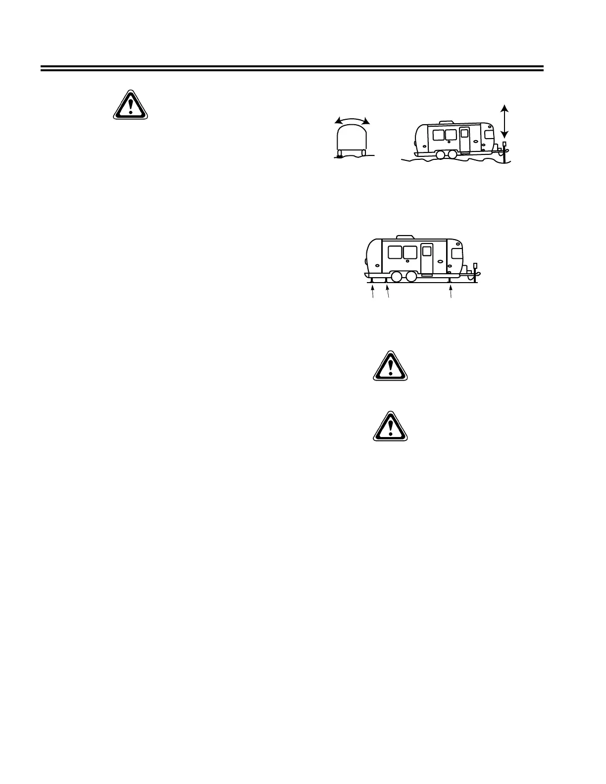 from rolling. Use stabilizing jacks at all four corners, as