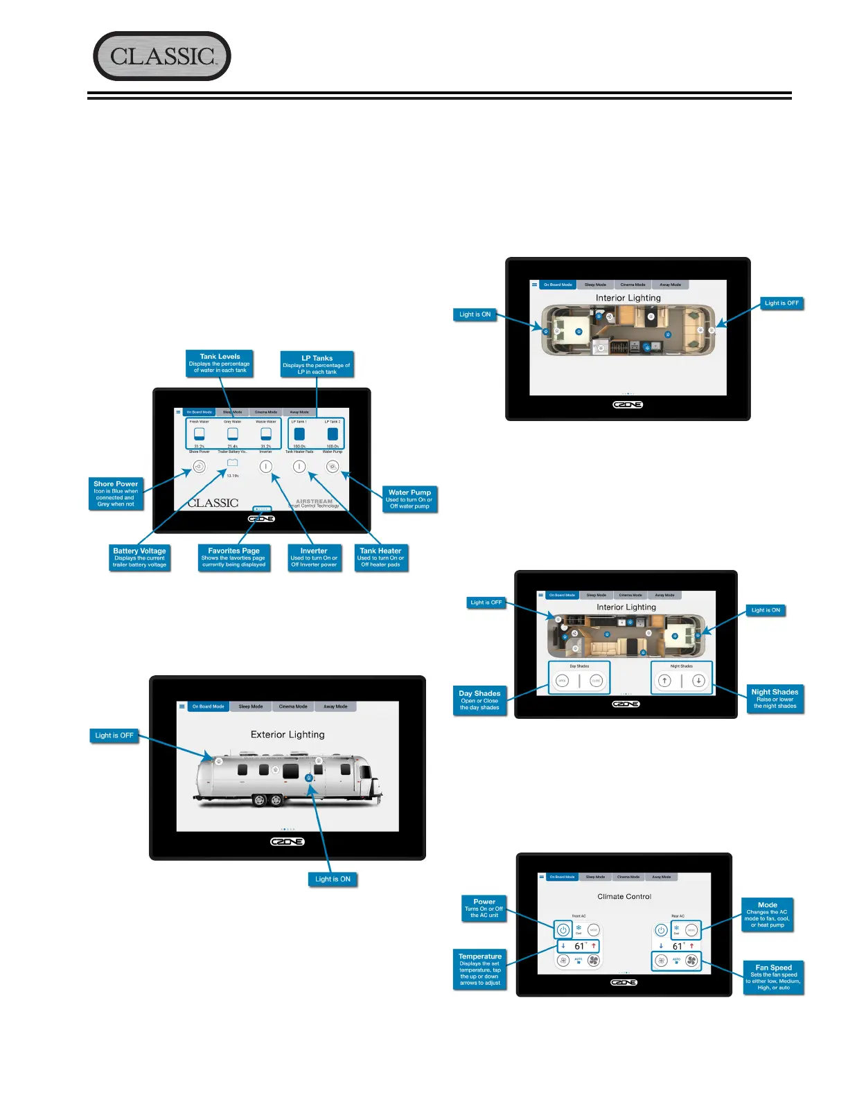 trailer’s interior lighting� Tap the icon to turn ON