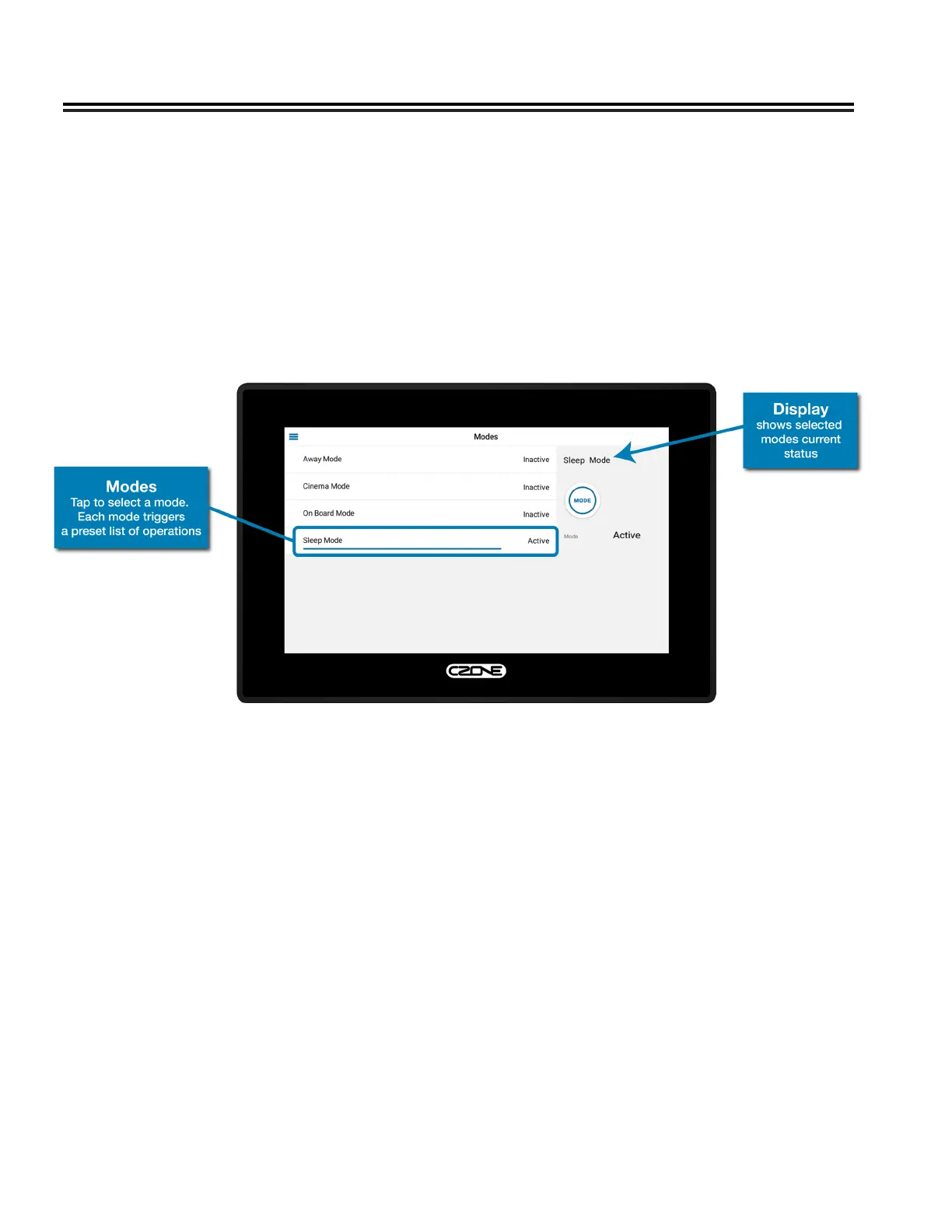 On-Board Mode - Provides an easy one touch ability to turn ON most features of the travel trailer.
