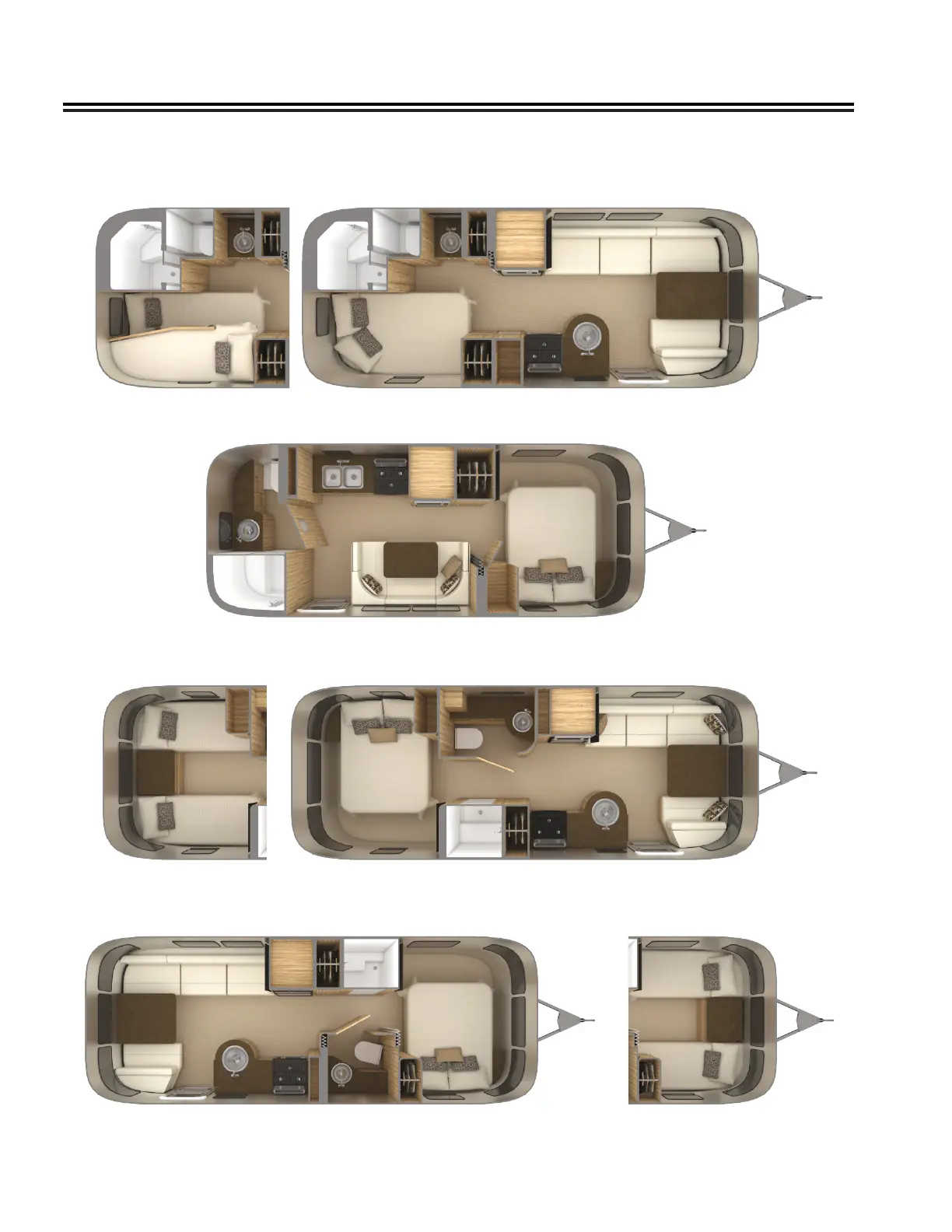 Airstream Flying Cloud 2020 - Floor Plans; 23 CB Flying Cloud; 23 FB Flying Cloud; 25 RB Flying Cloud