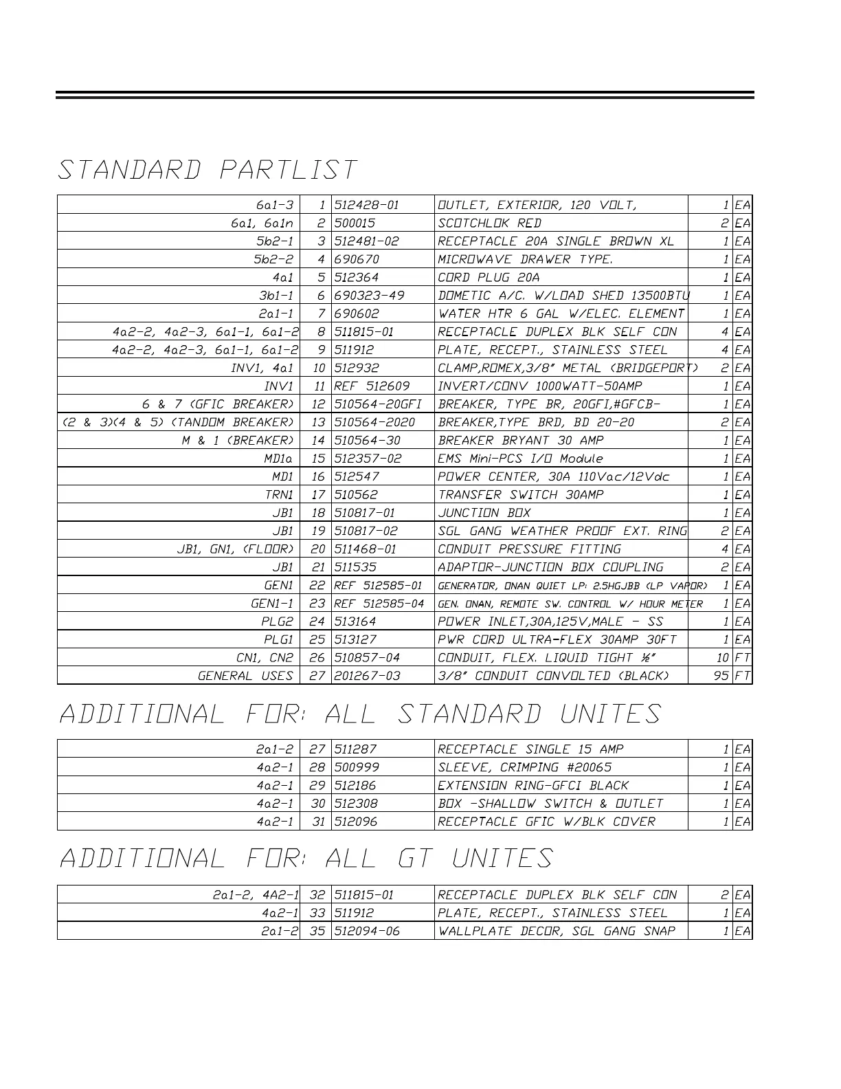 Airstream Interstate 2019 - 30-Amp 120-Volt Standard Parts List