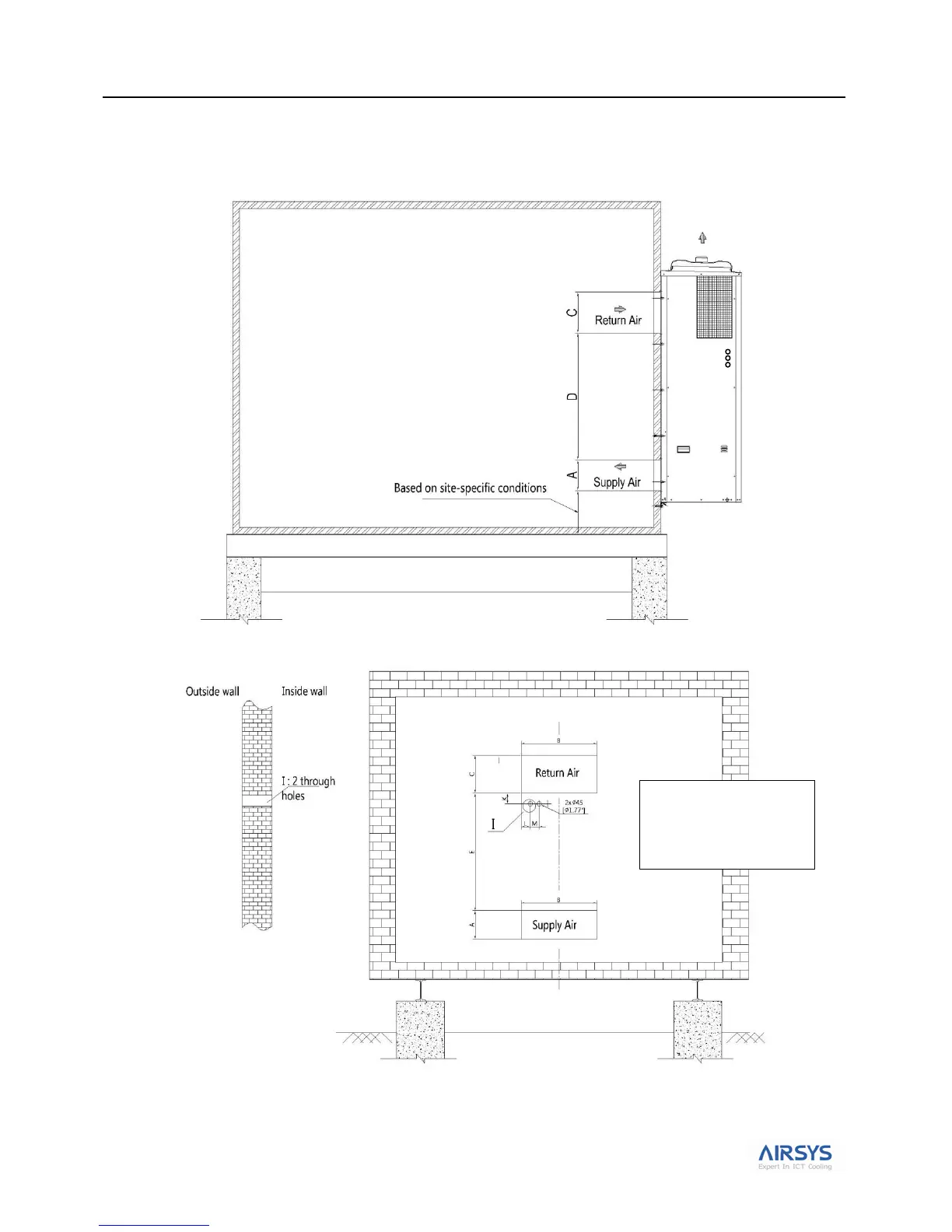 Make openings for supply and return air and cable and bolt holes in the installation wall as shown in Figure 3 and