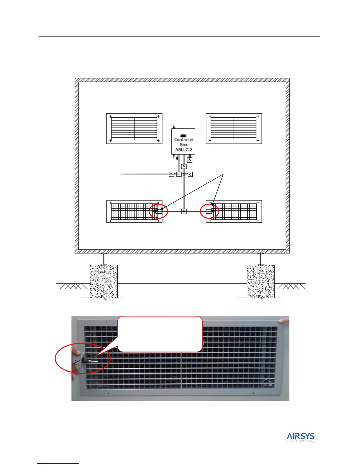 The supply air temperature sensors should be installed at the middle-front of the supply air grill as shown in Figure