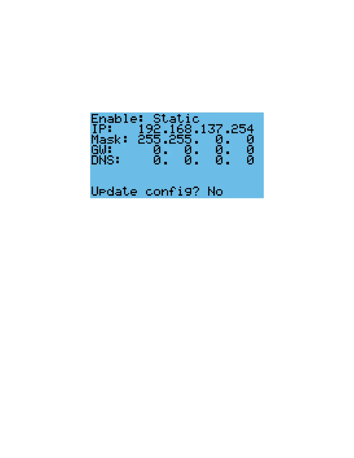 6. Press Enter until the cursor is over “Update Config” and press Up to change “No” to “Yes”.