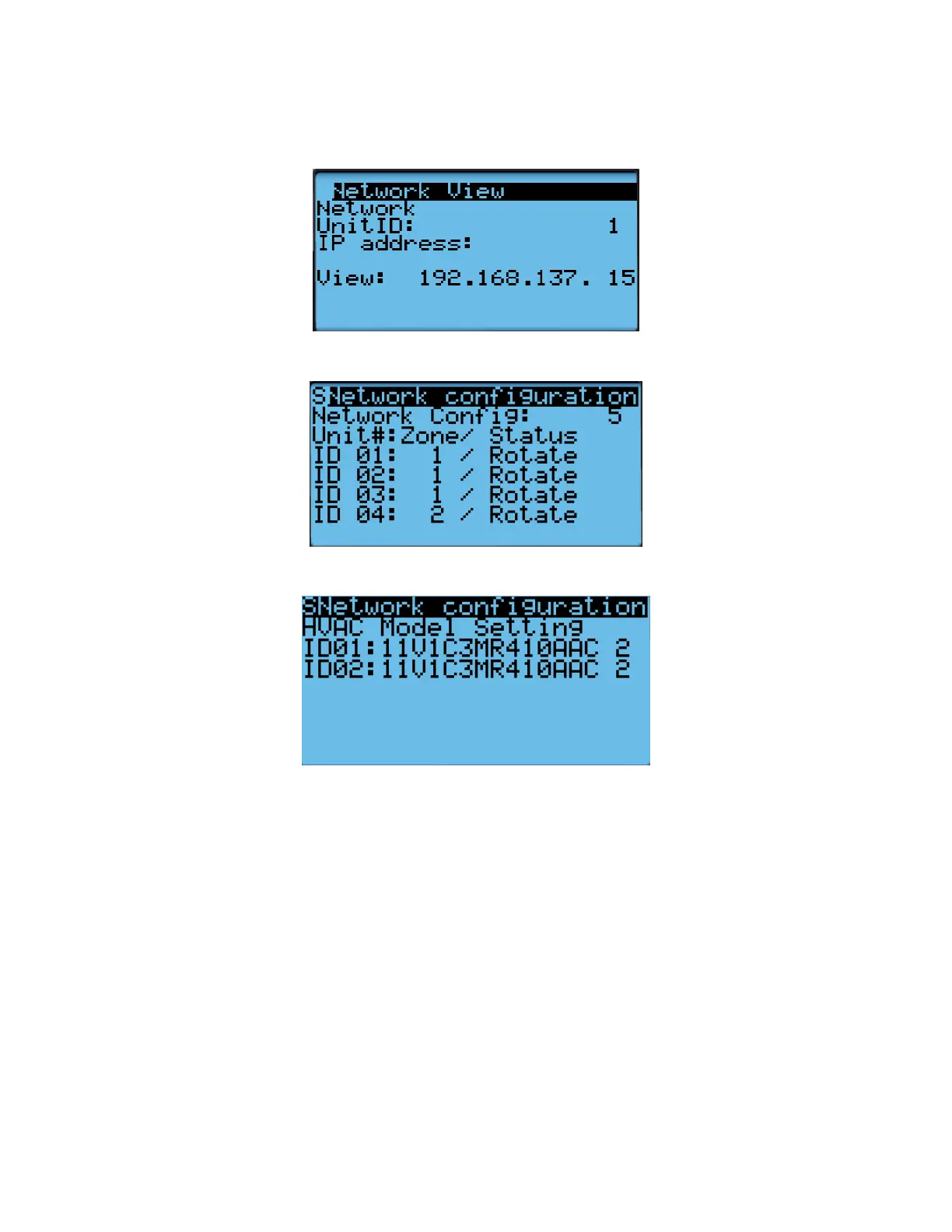 b. IP address of all connected HVAC units (Press Enter and use the Up and Down buttons to