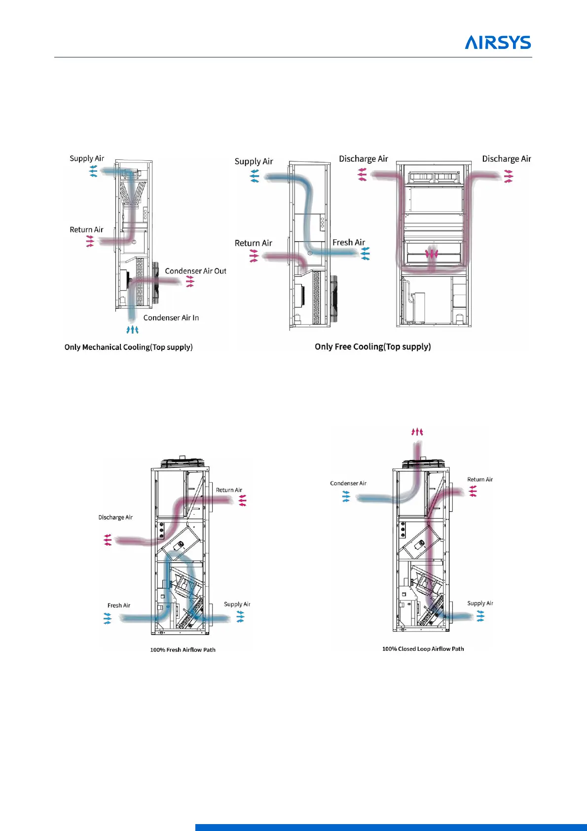 (economizer), and the control system. The control system determines the unit’s mode of operation: free cooling