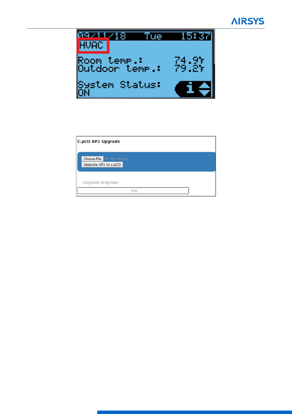 5. Click “Upgrade AP1 to c.pCO”, the upgrade process will start.