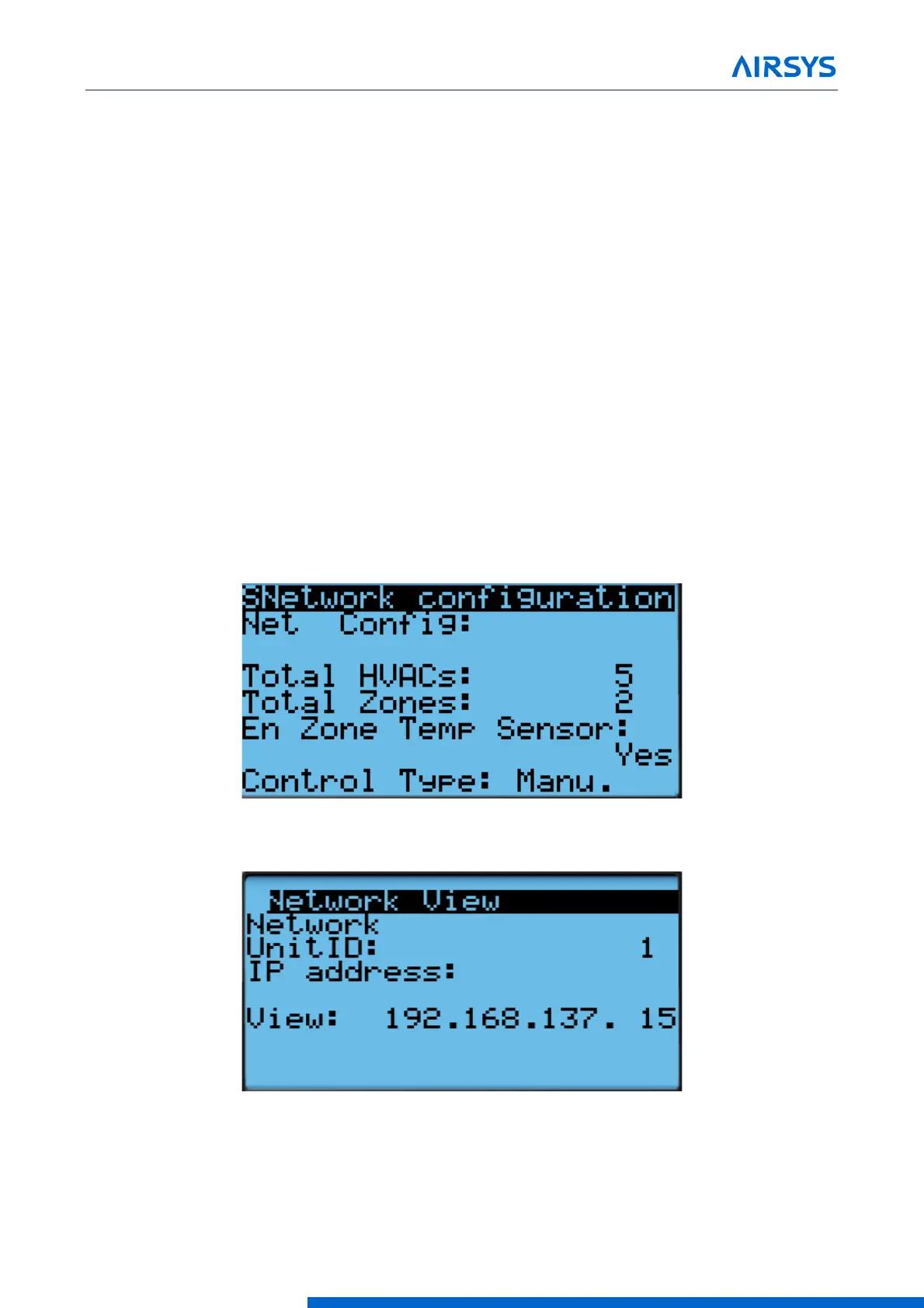 • IP address of all connected HVAC units (Press Enter and use the Up and Down buttons to cycle through