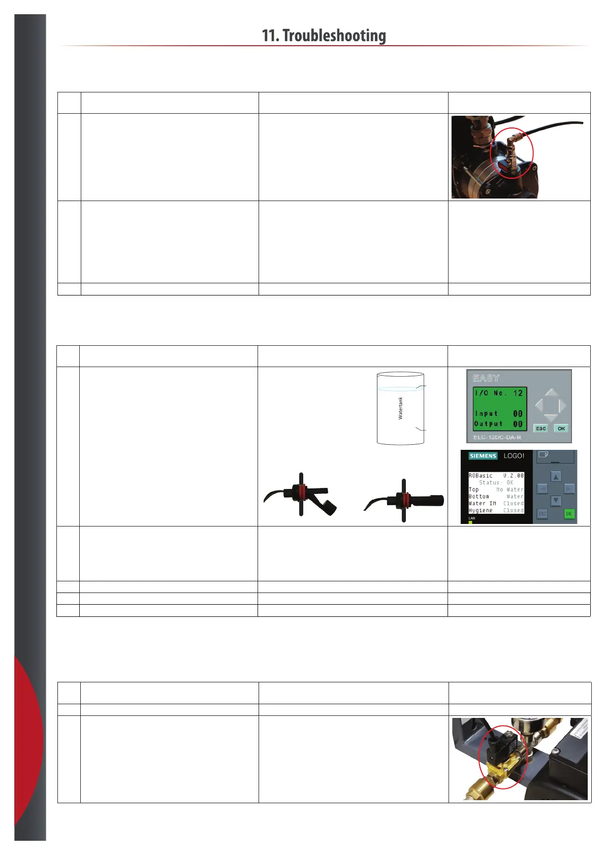 Solenoid valve water in defect. • Check manometer when system is asked to start production.