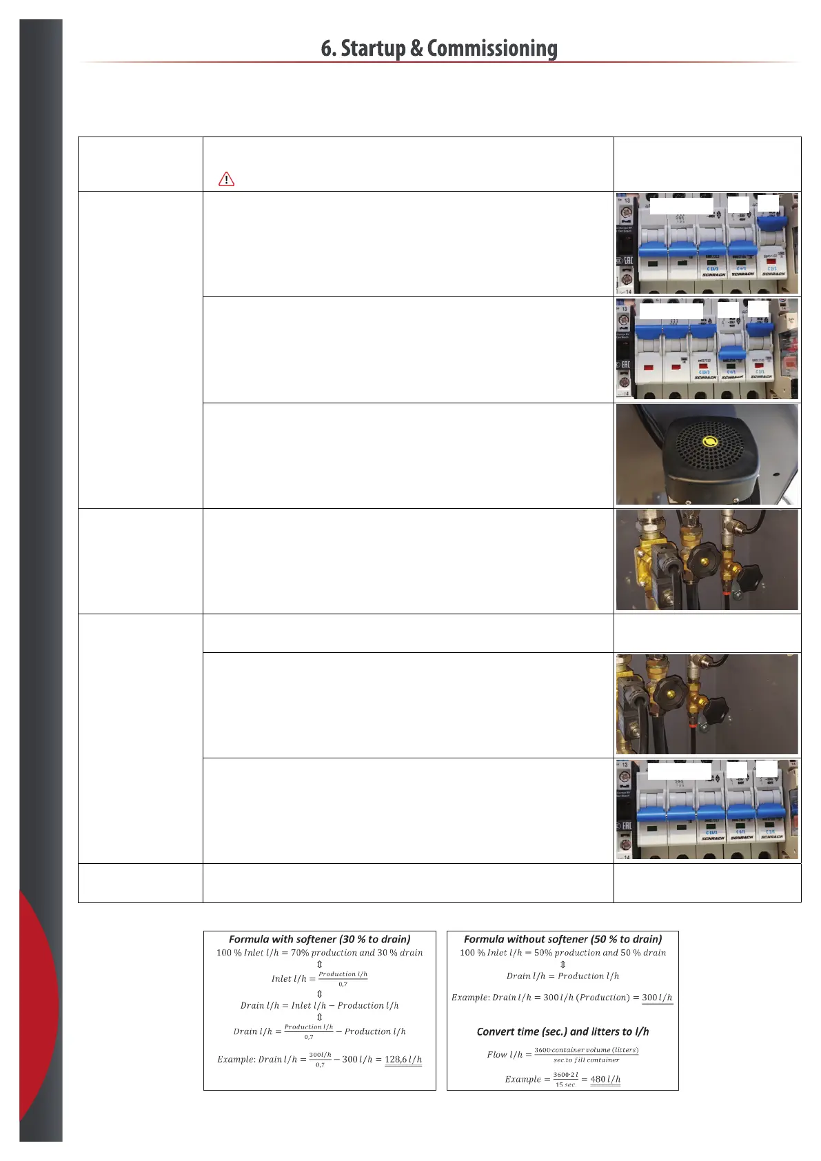 • Measure and note the permeate water ow l/h, you can have multiple hoses.