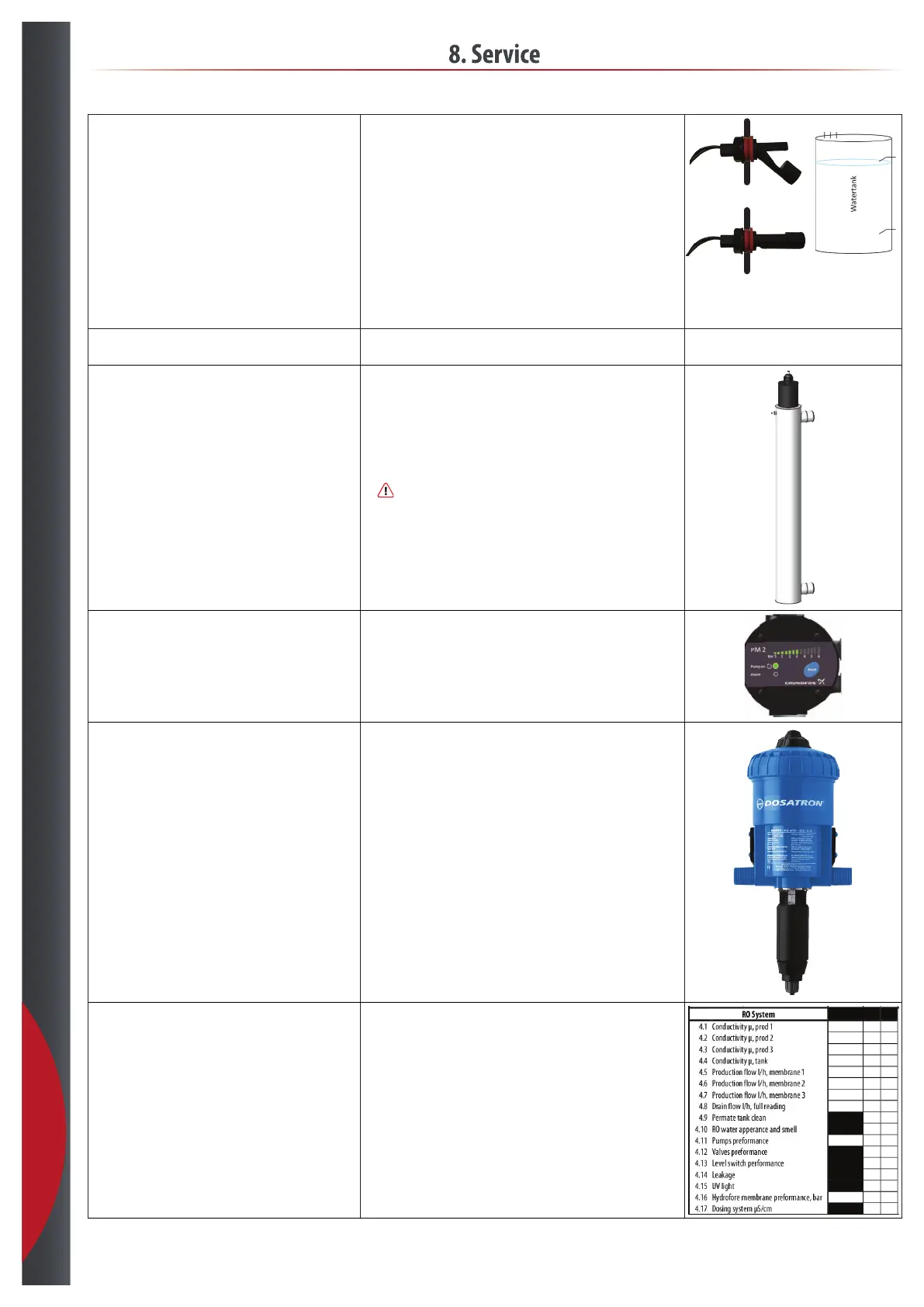 Check dosing system, conductivity dosing - if installed. • Close off the water for the dosing tank