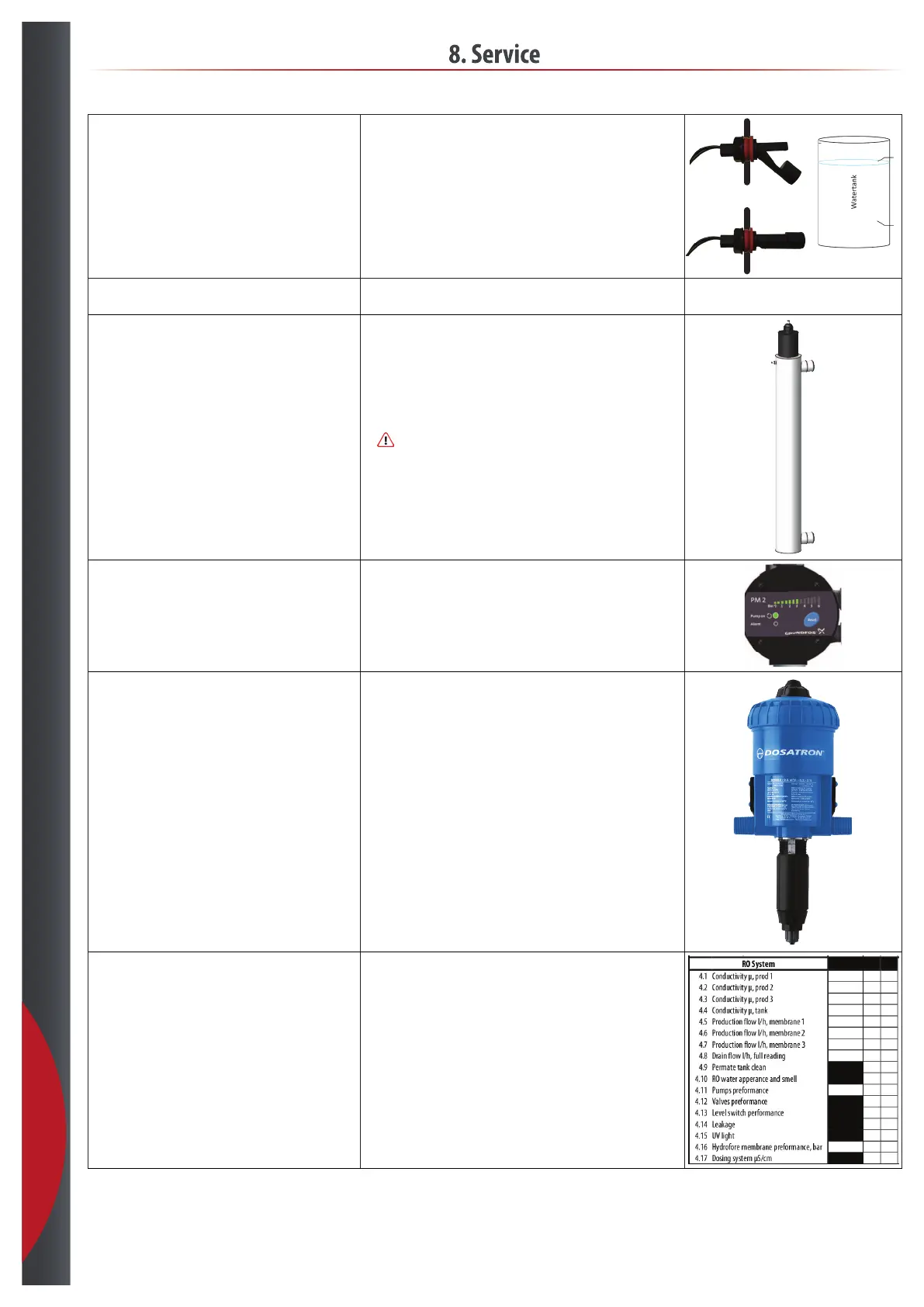 Check dosing system, conductivity dosing - if installed. • Close off the water for the dosing tank.
