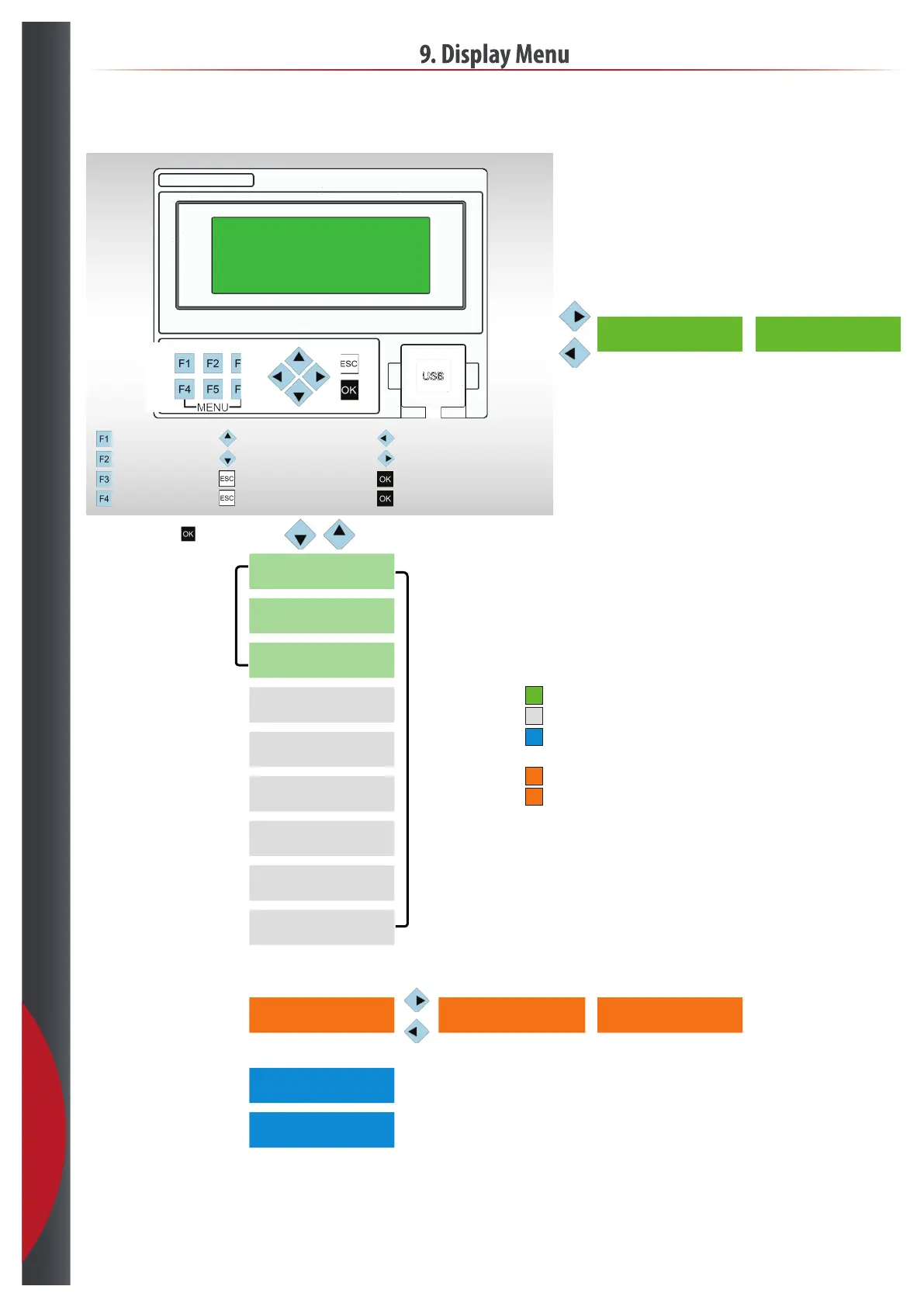 - Frontpage > 2 sec. - Alarm status > 2 sec. - Password