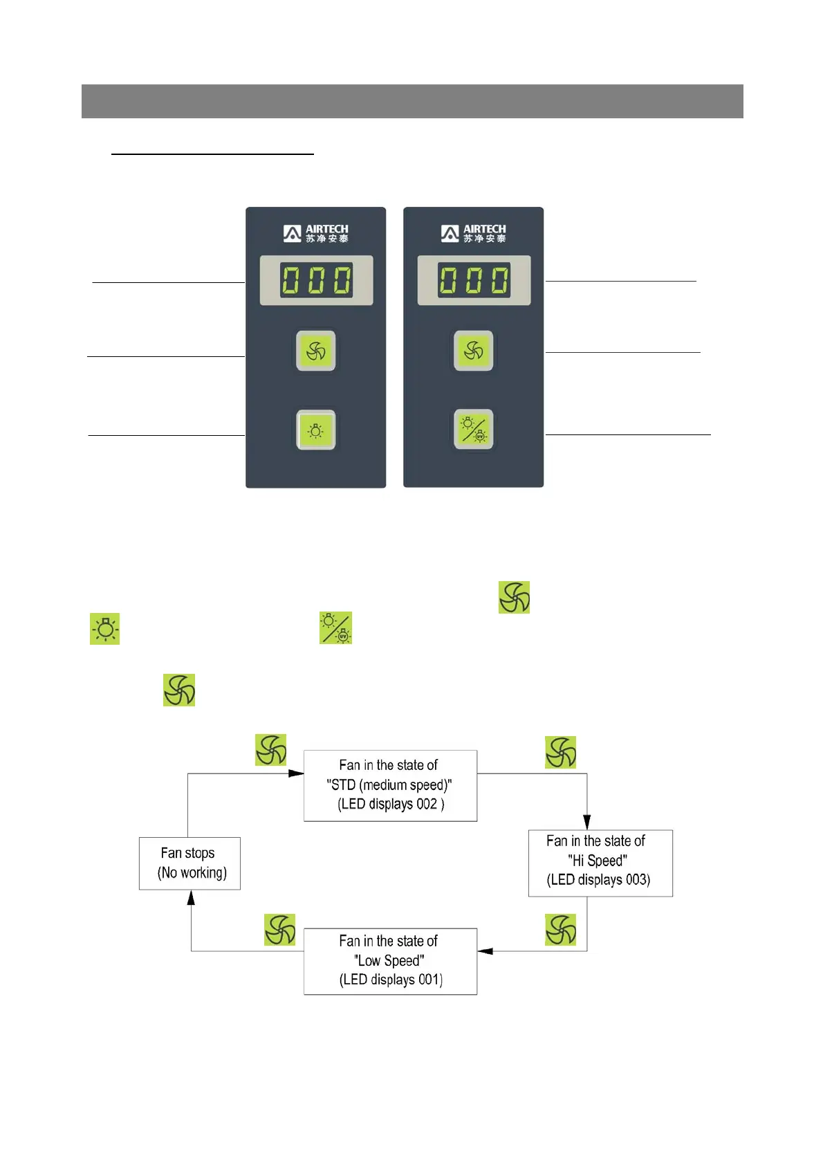 As shown in the Fig 3, there are buttons on the panel: Fan Button (with light),