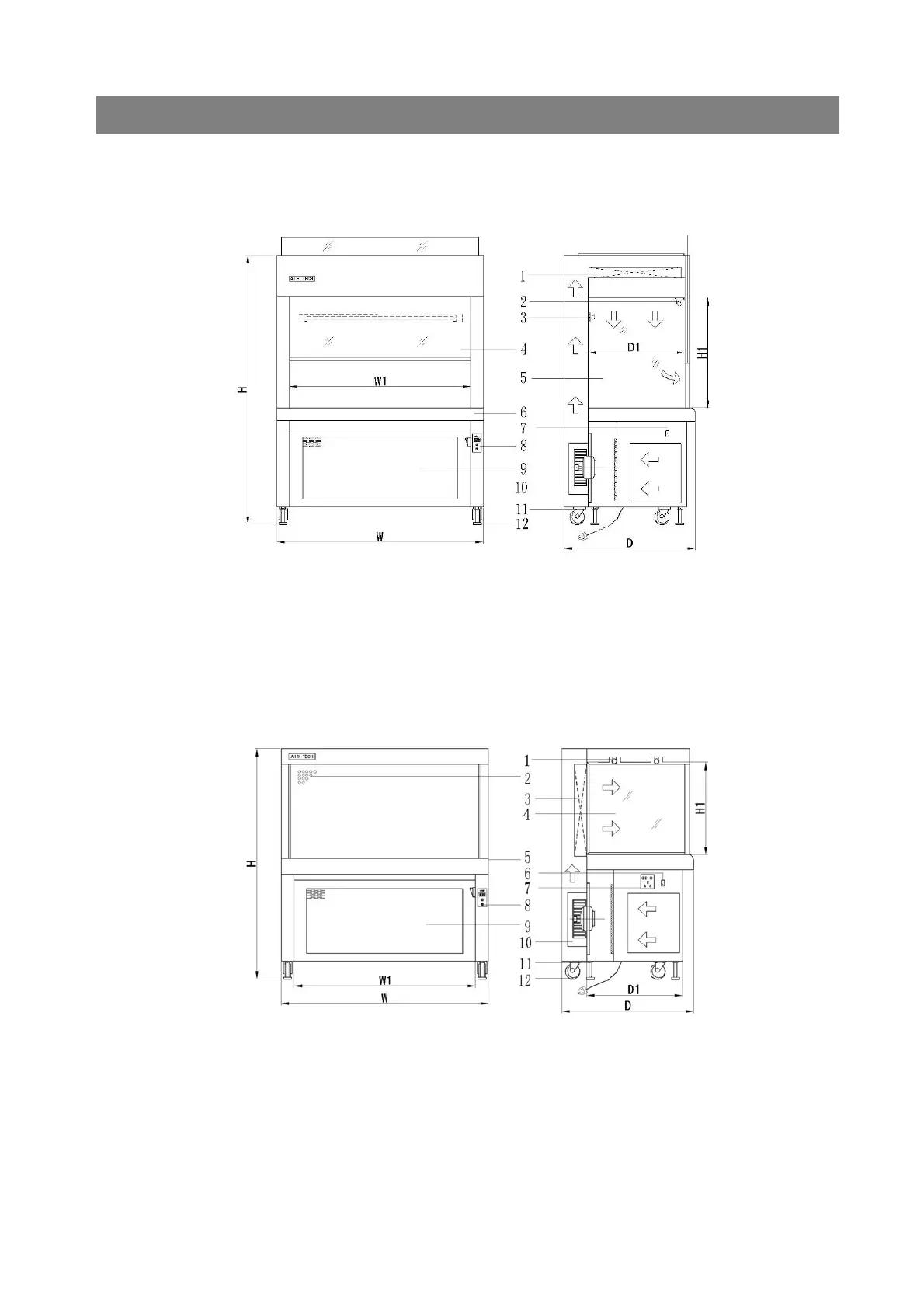 As shown in Fig.1 & 2, the clean bench consists of the body case, HEPA filter, air supply