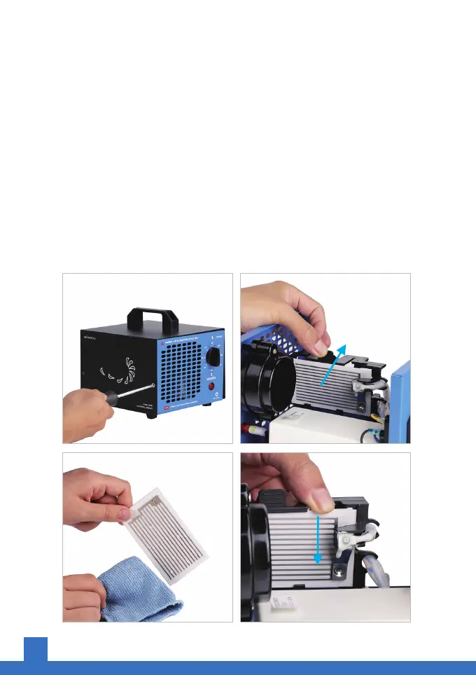 3. Limpie o cambie las placas de ozono como se indica a continuación, si la salida de