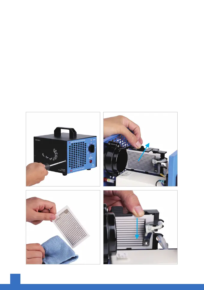 3. Nettoyez ou changez les plaques d'ozone comme suit si la production d'ozone est