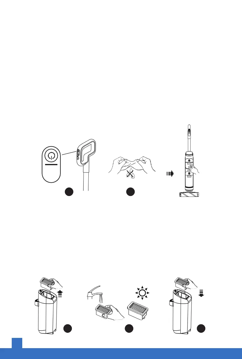 Clean the HEPA filter under running water after each use. Make sure the HEPA dries