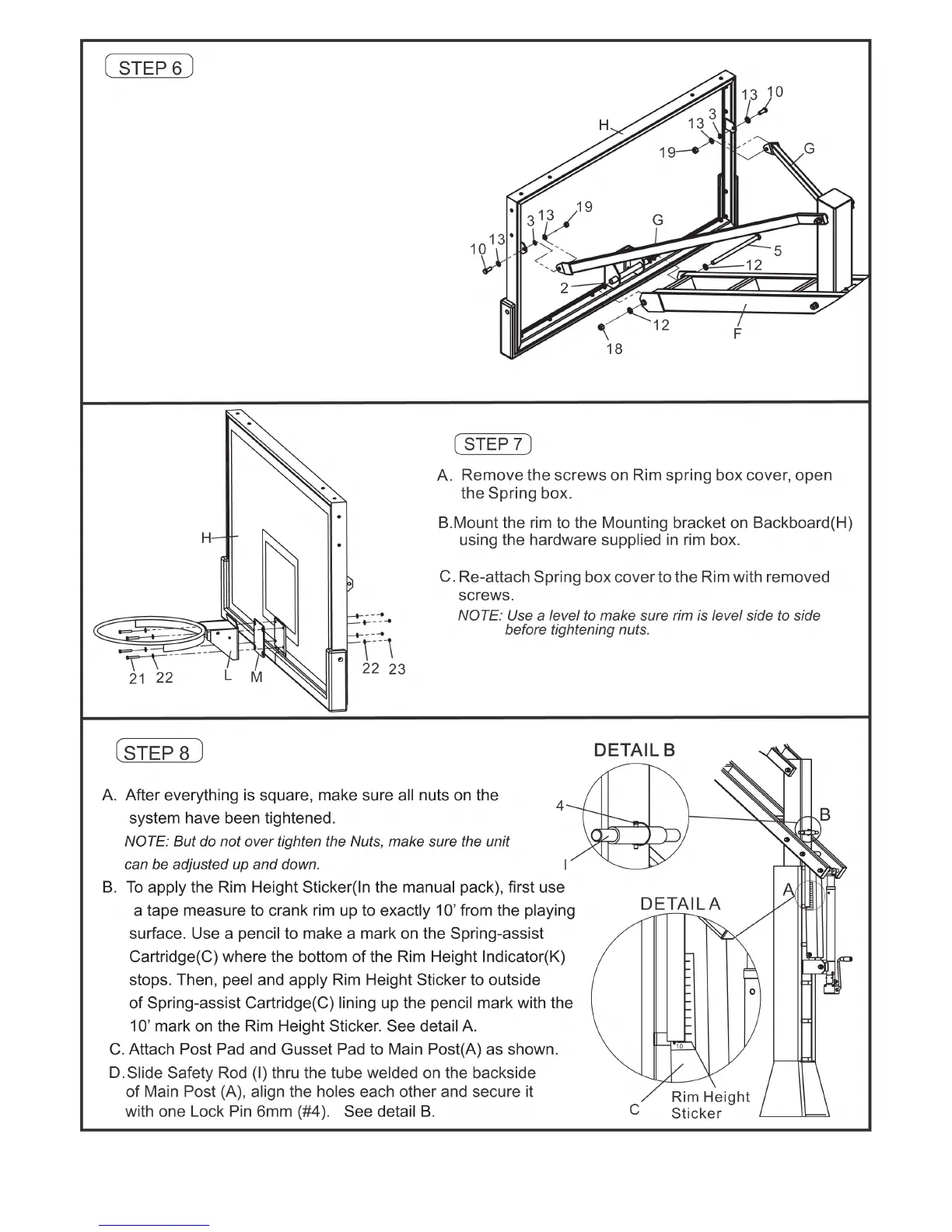 NOTE: Trying to lower the rim beyond the height limitation with the Safety Rod (I)