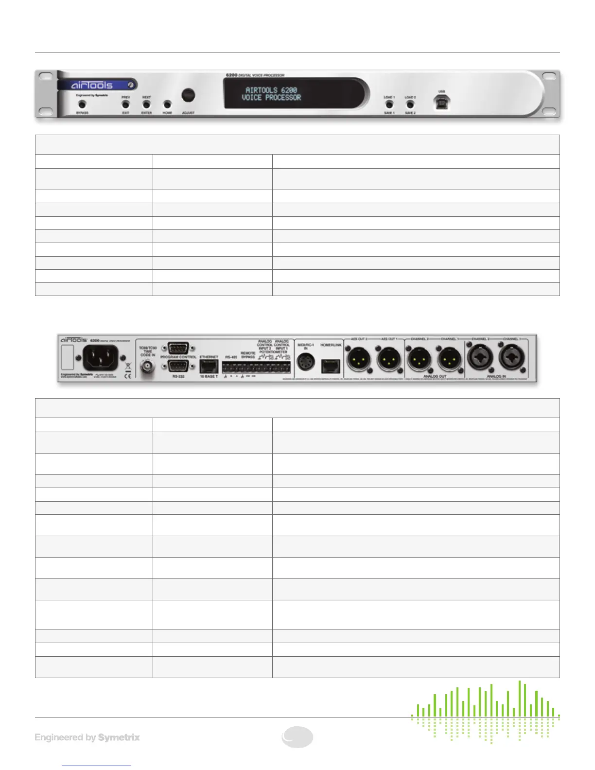USB Female “B” USB 1.1 port Optional connection to a Windows™ PC for 6200 Designer GUI control.