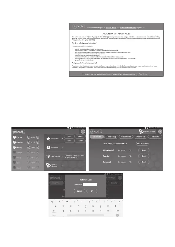 can be changed. Touching Installer’s button in the Settings list will bring up password