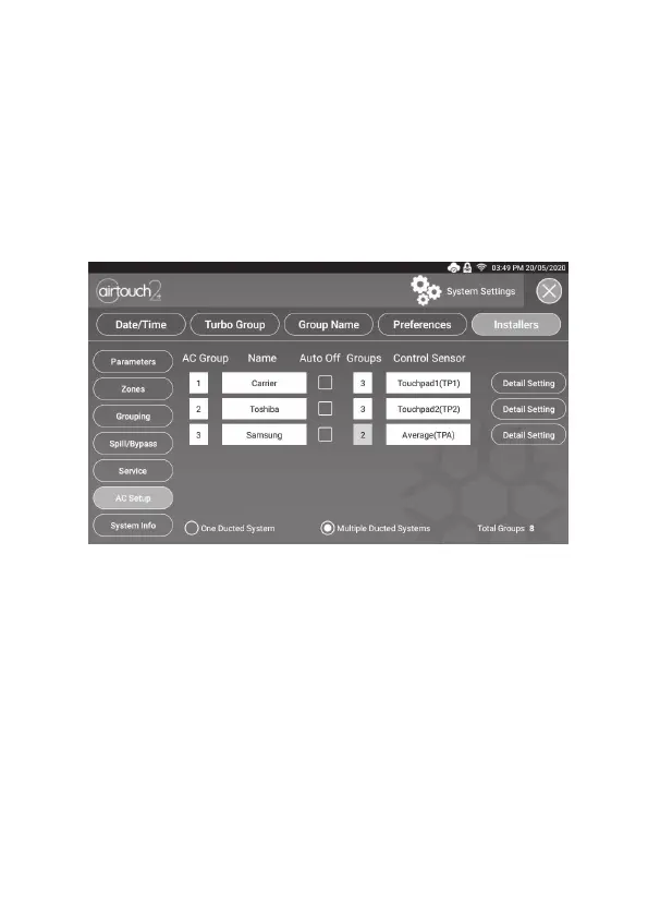 If there are more than two ACs in the system. they can be grouped to be turned on
