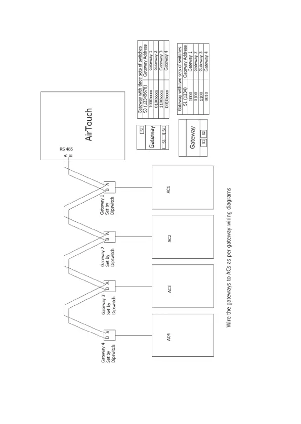 be joined in serial as shown in the wiring above. Each gateway will be set with a