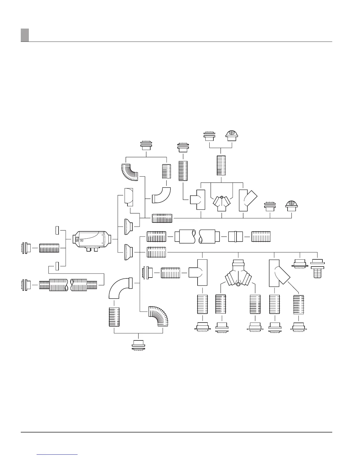 The sketch shows how the most important air ducting parts that can be used. They are not intended as examples of installation.
