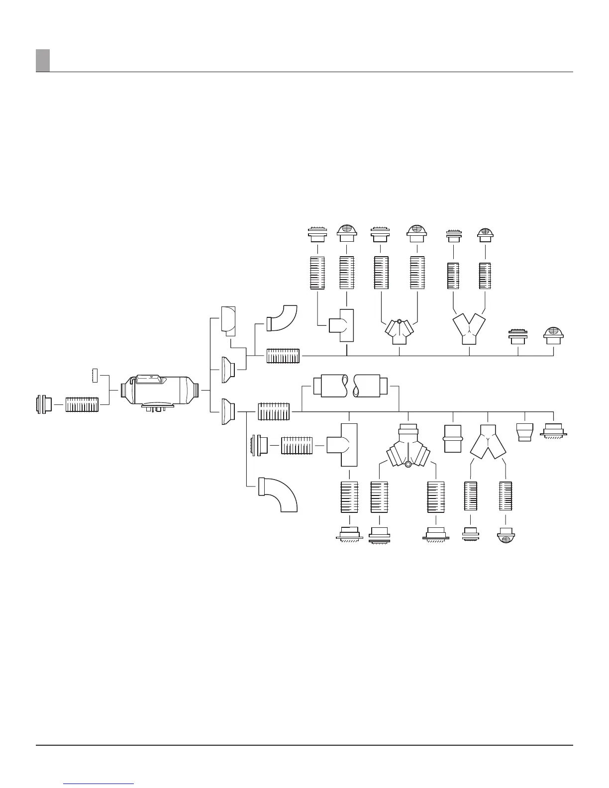 The sketch shows how the most important air ducting parts that can be used. They are not intended as examples of installation.