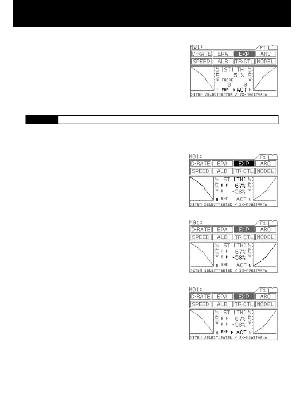 In order to activate the EXP function, select ACT; to deactivate, select INH.