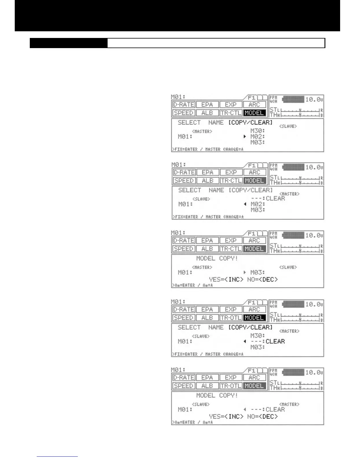 copy the current model (Master) to, press the ENTER