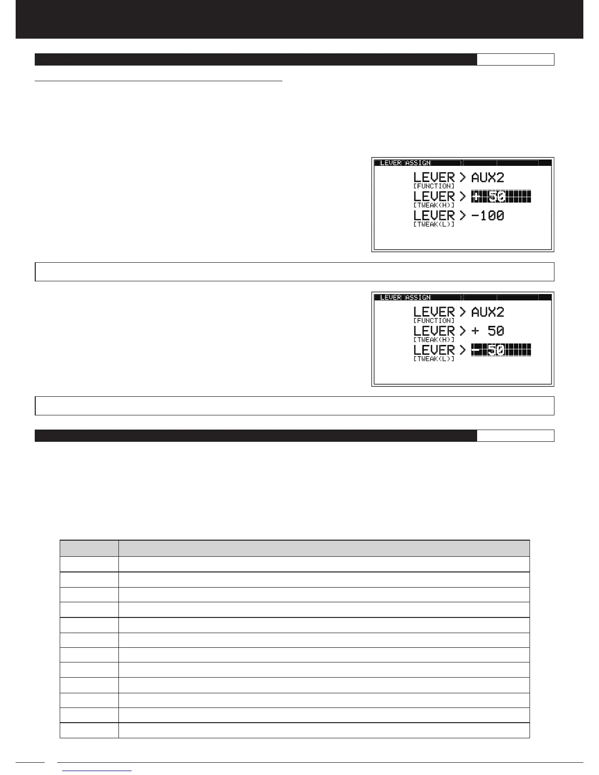 The High and Low Tweak values both determine how far and in which direction the Auxiliary Lever controls the function Assigned