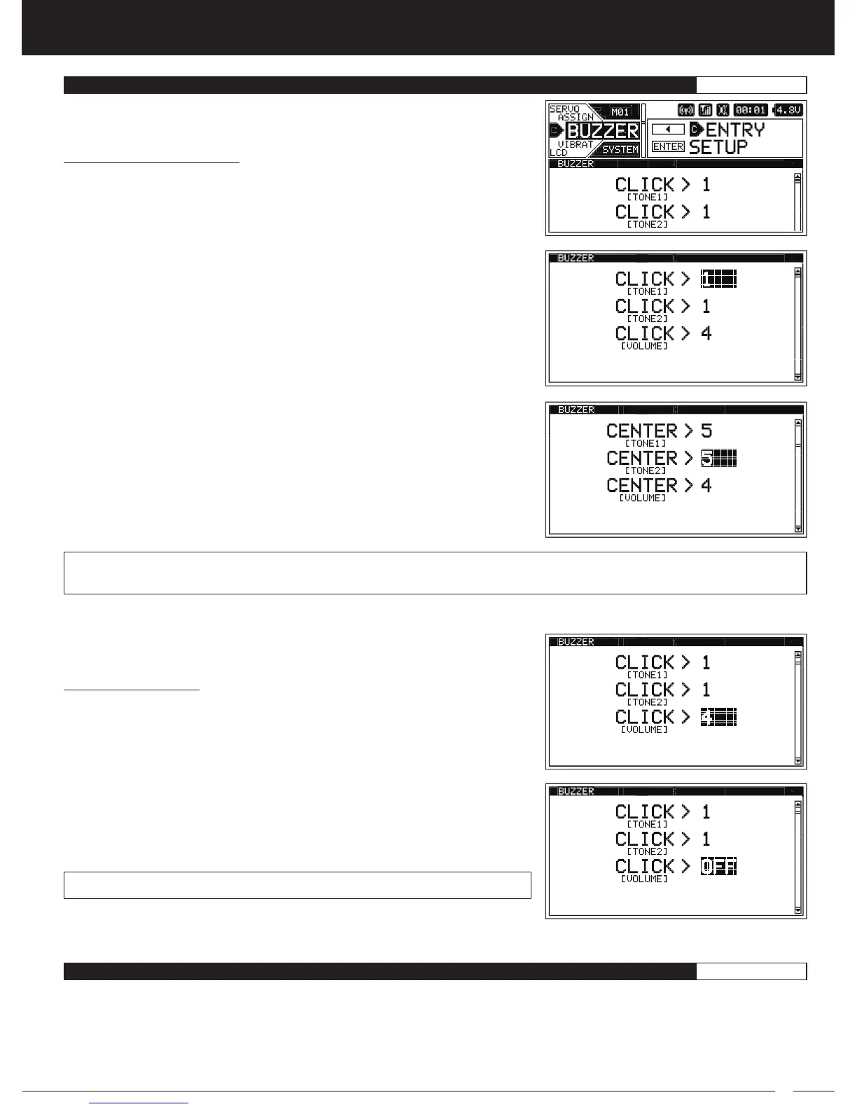 2) Press the ENTER key to open the BUZZER menu. CLICK [TONE1] > 1 will be