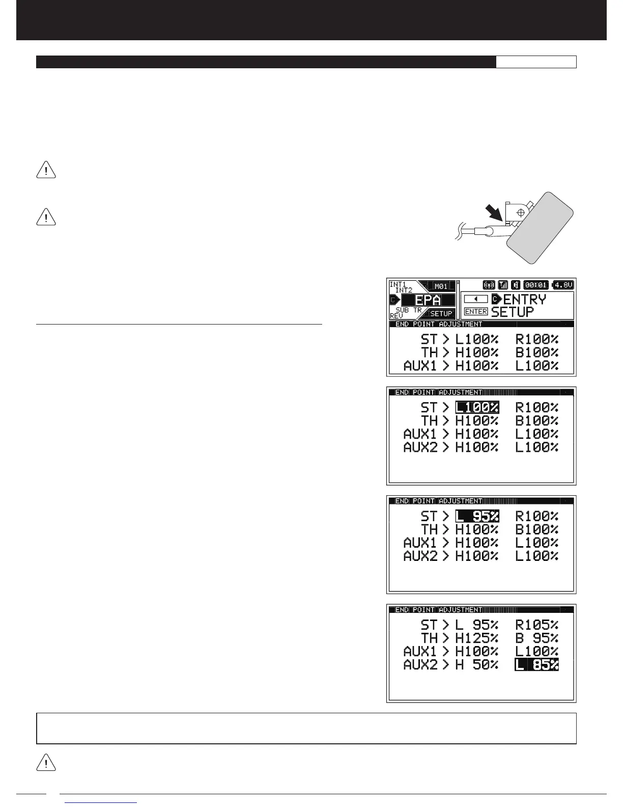The End Point Adjustment function allows you to adjust servo travel in each direction. This makes it possible to balance servo