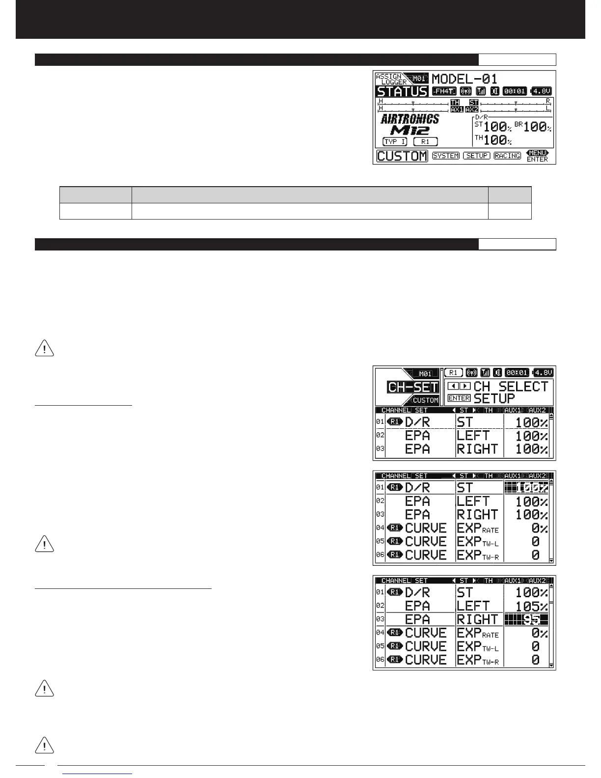 Function Programming Values changed from within the CH-SET menu are duplicated in the specific function's Programming