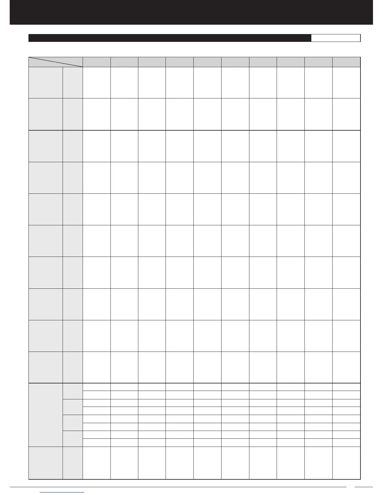 AIRTRONICS M12 - Racing Mode Functions by Car Type Table