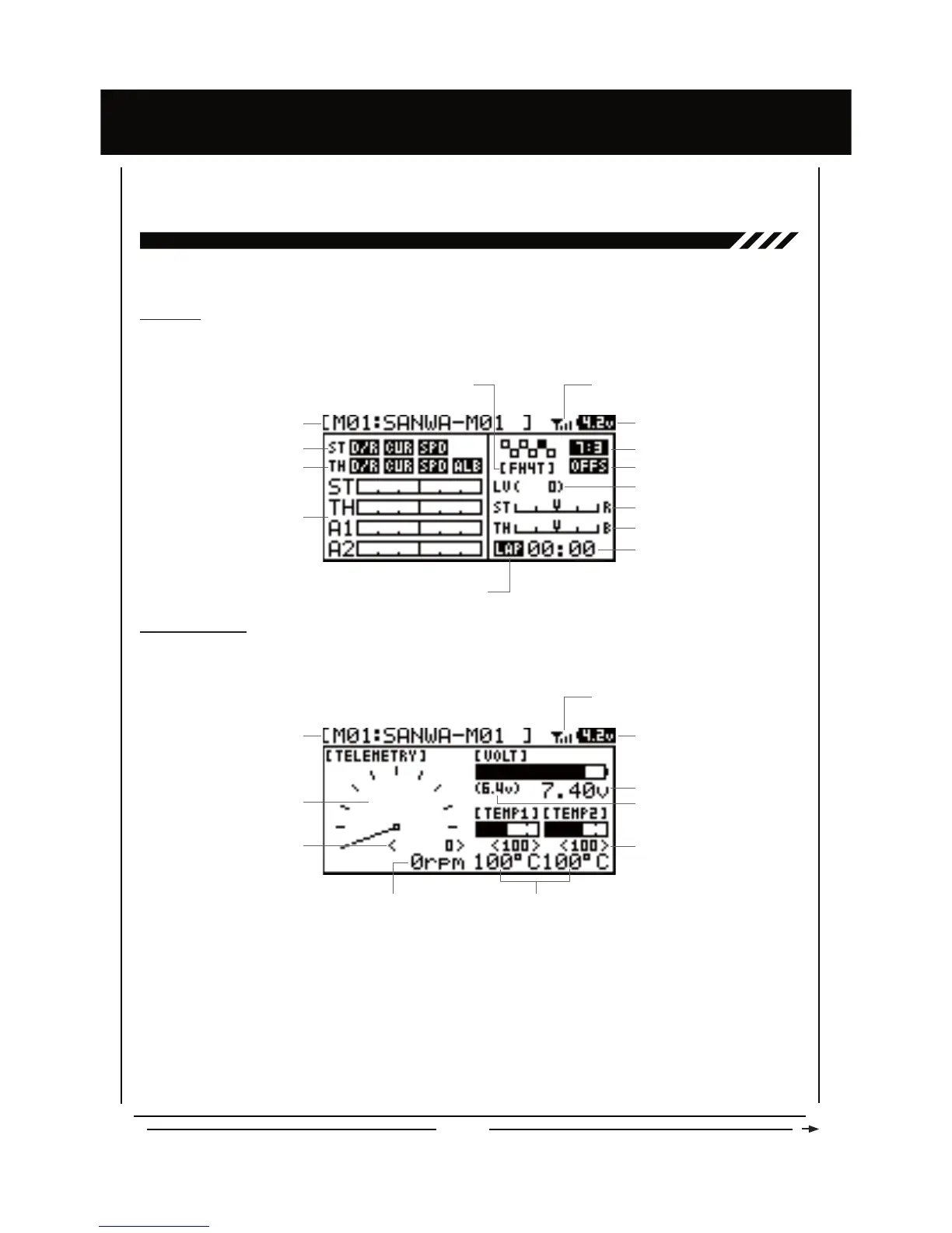 7KH7HOHPHWU\0HQXGLVSOD\VDOOSHUWLQHQW7HOHPHWU\LQIRUPDWLRQVXFKDV5307HPSHUDWXUHDQG5HFHLYHU9ROWDJH7RGLVSOD\WKH