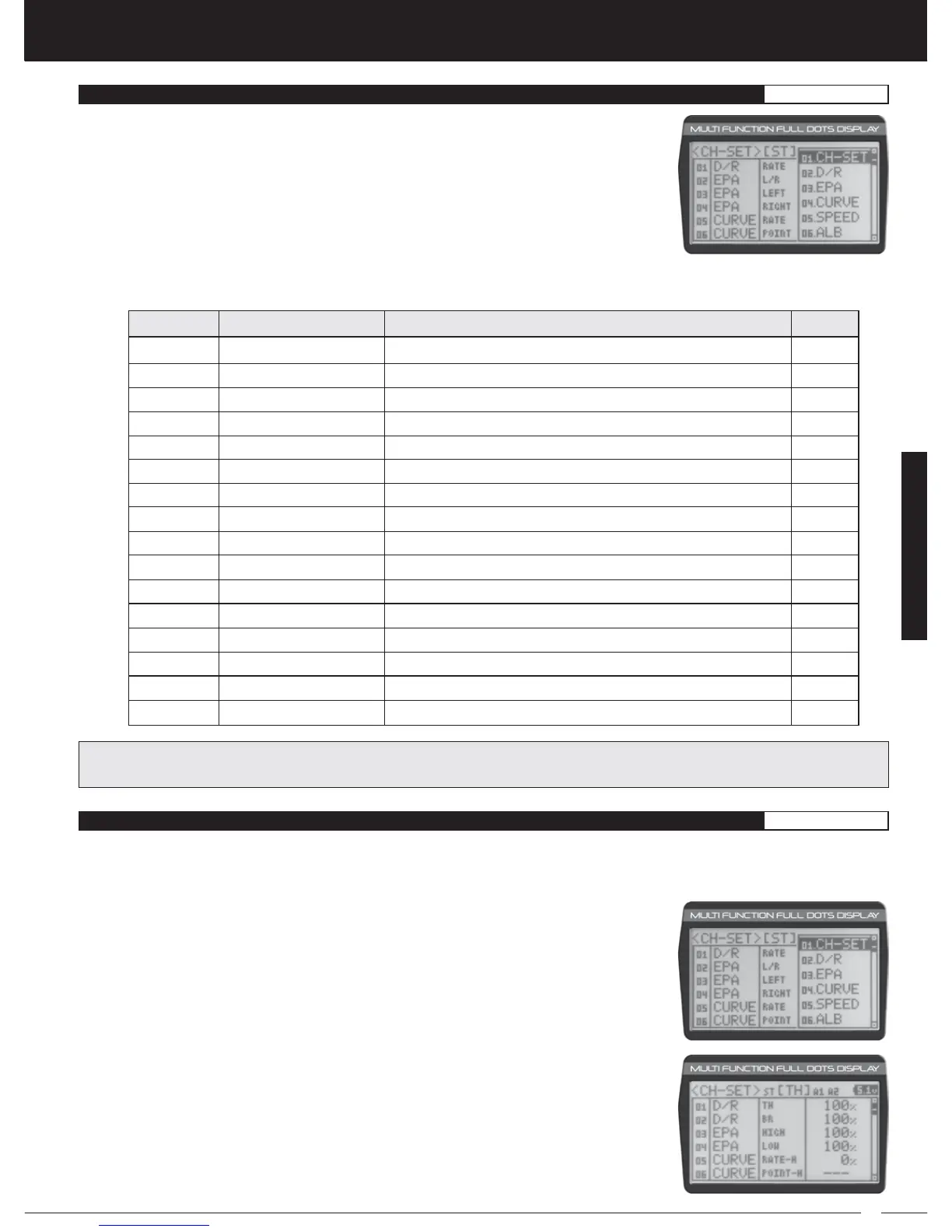 Value changes to. Choose from <CH-SET> [ST] (Steering), <CH-SET> [TH] (Throttle),