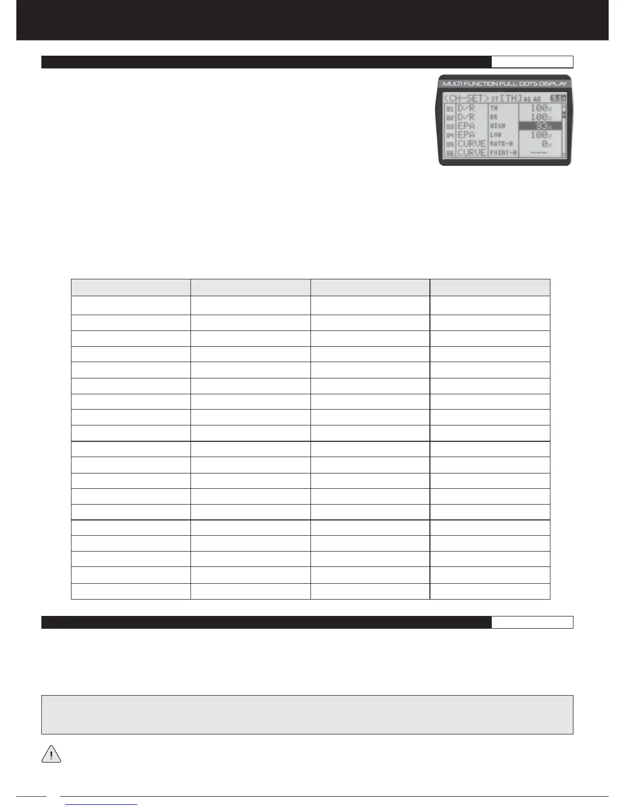 IMPORTANT: Prior to programming the Dual Rate function, you should adjust the maximum Left and Right (or High and Low)
