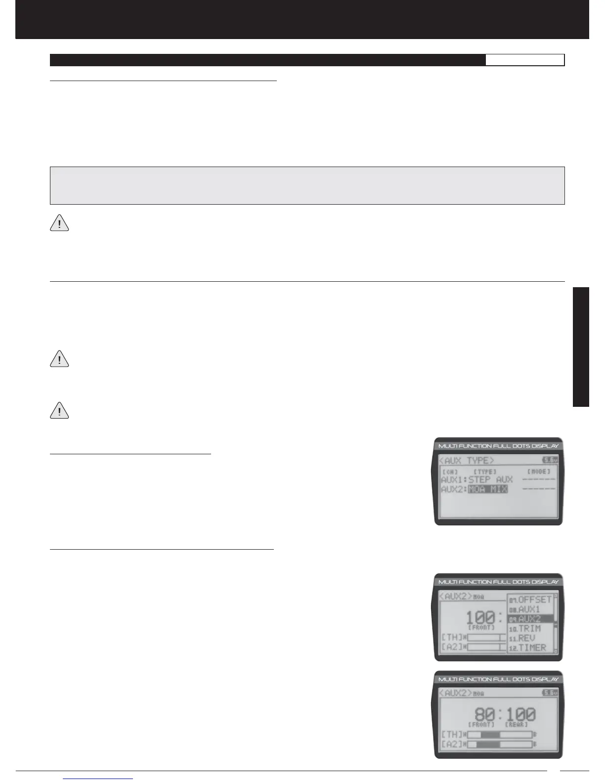 When using the Motor on Axle function, it's important to adjust the Throttle Channel 2 and Auxiliary 2 Channel 4 Sub-Trim