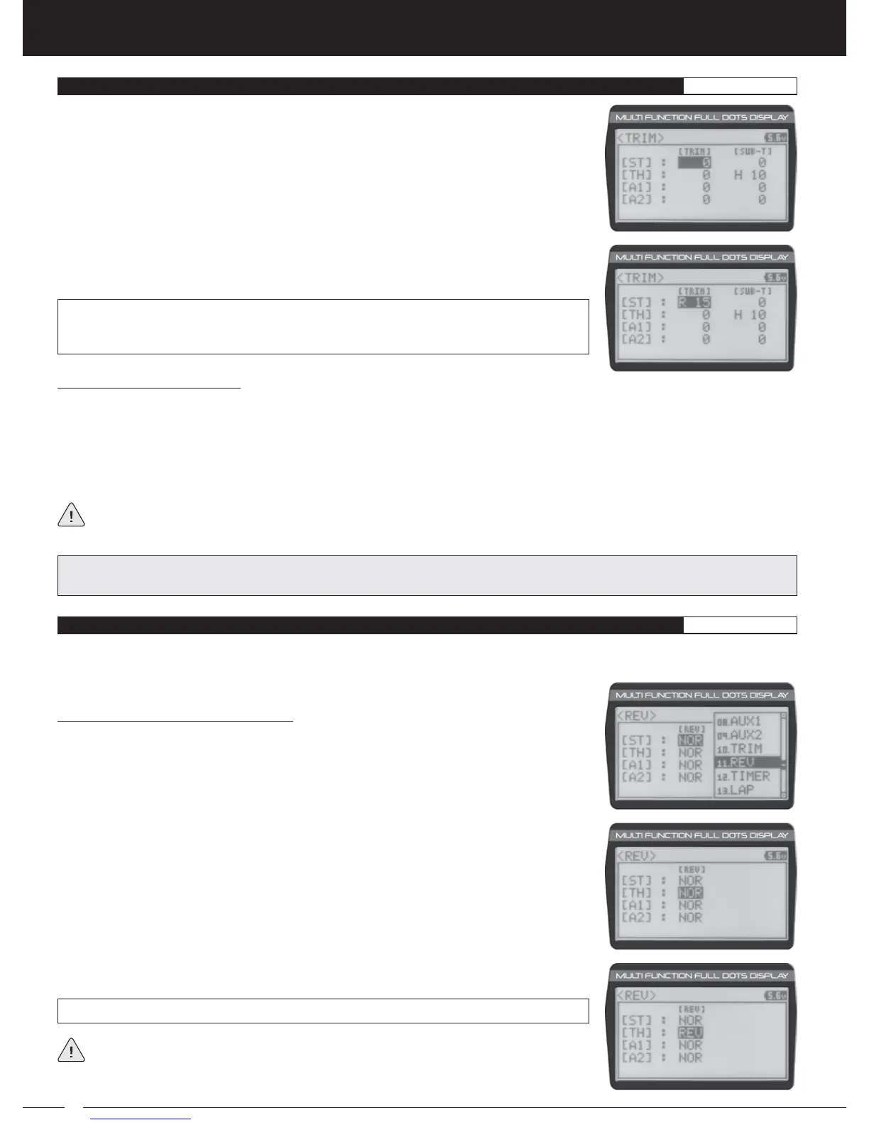 Reversing value for. Choose from either [ST]:NOR (Steering), [TH]:NOR (Throttle),