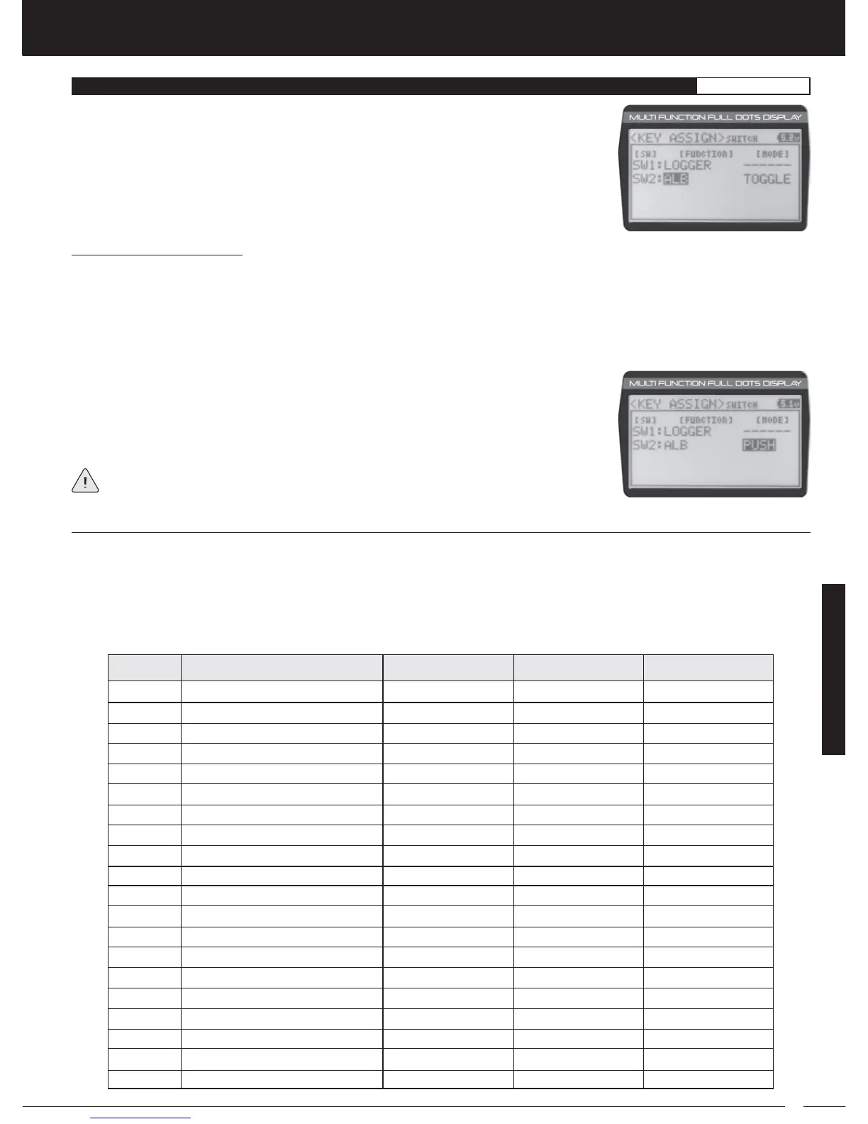 SW1 or SW2. A list of functions that can be assigned to the Push-Button Switches is