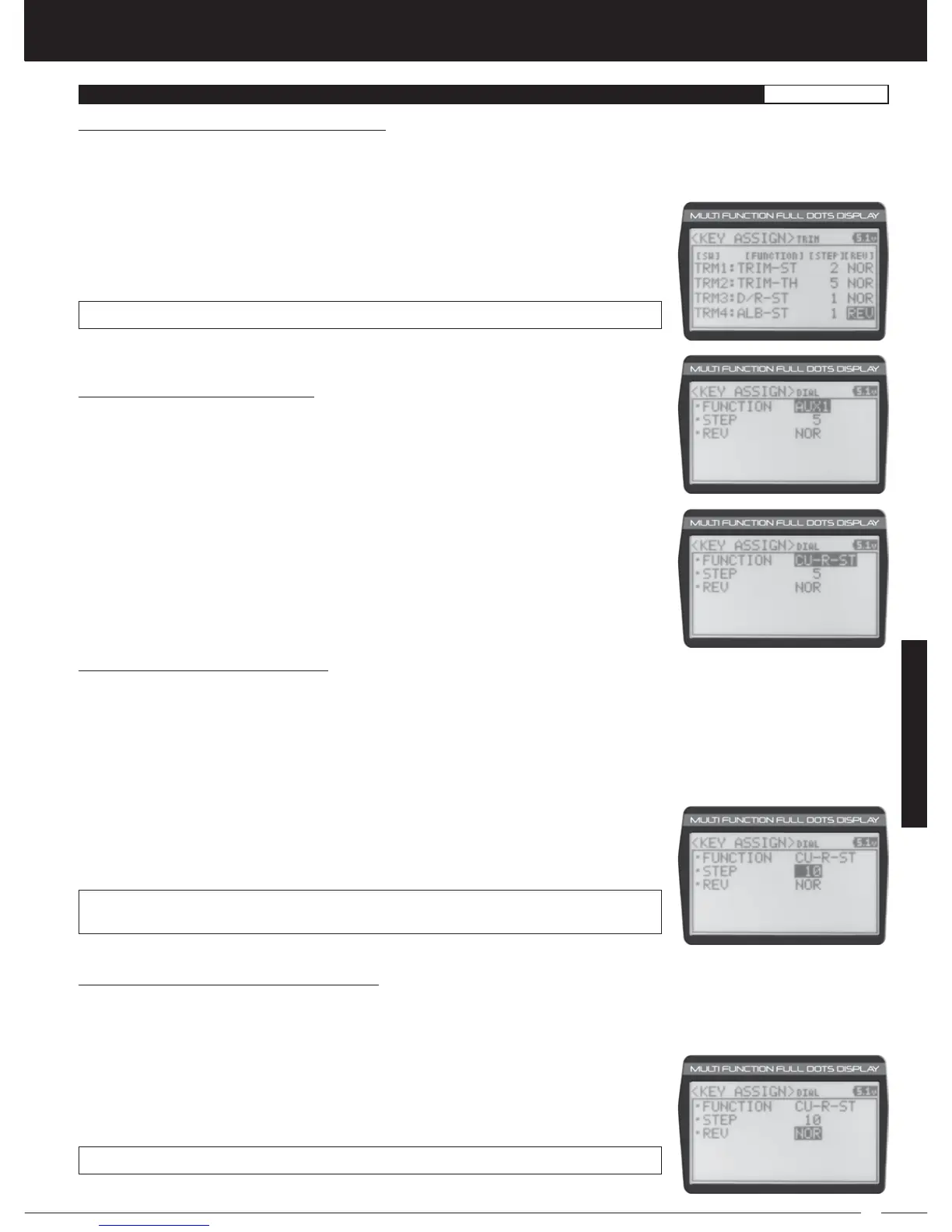 TRIM REV setting range is NOR and REV. The default setting for all Trim Switches is NOR.